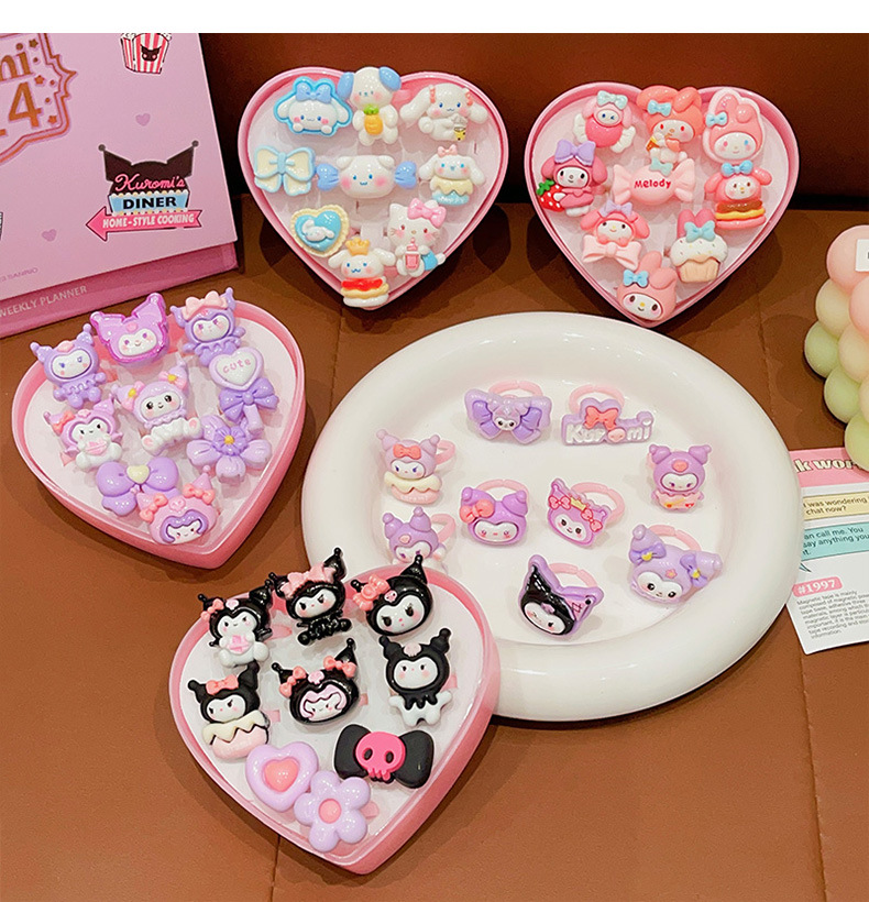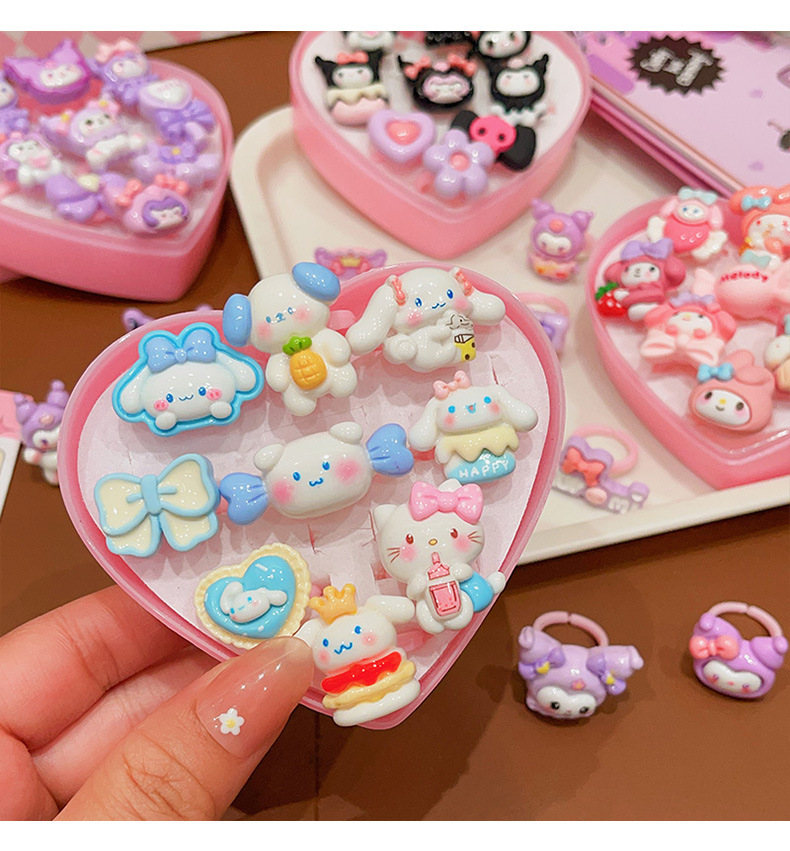 Children's Ring Princess Pink Jewelry Love Box suit Little Girl Cartoon Jewelry Baby Toy Girl's Ring