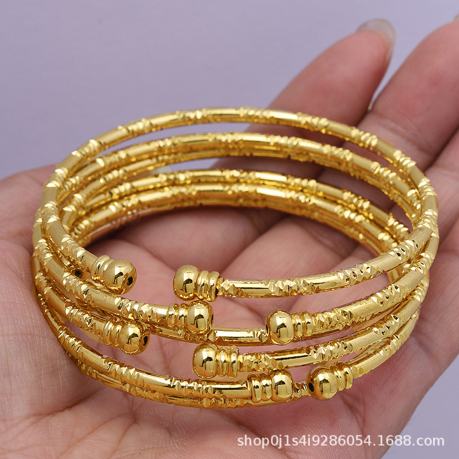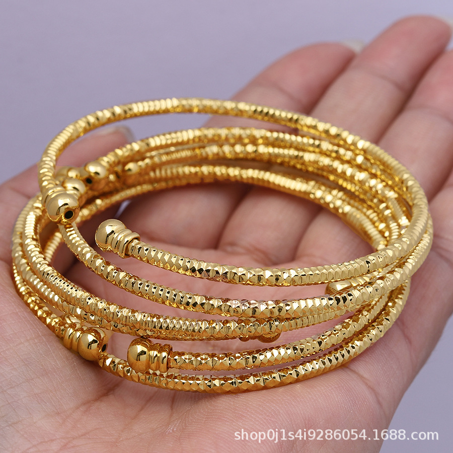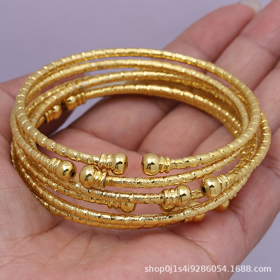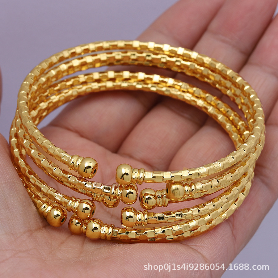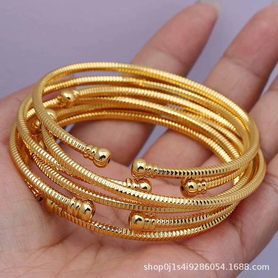 1Pcs Cross-Border Popular 3mm 24K Golden-Plated Double Bead Bracelet Middle East Dubai Ladies Bride Wedding