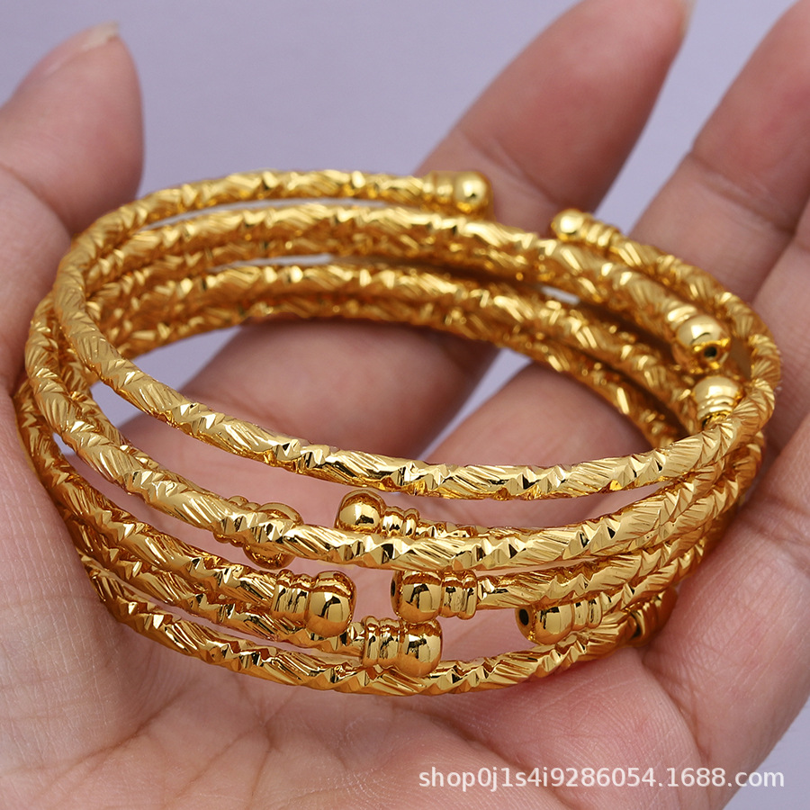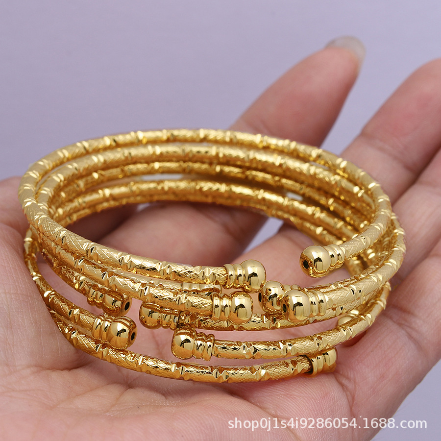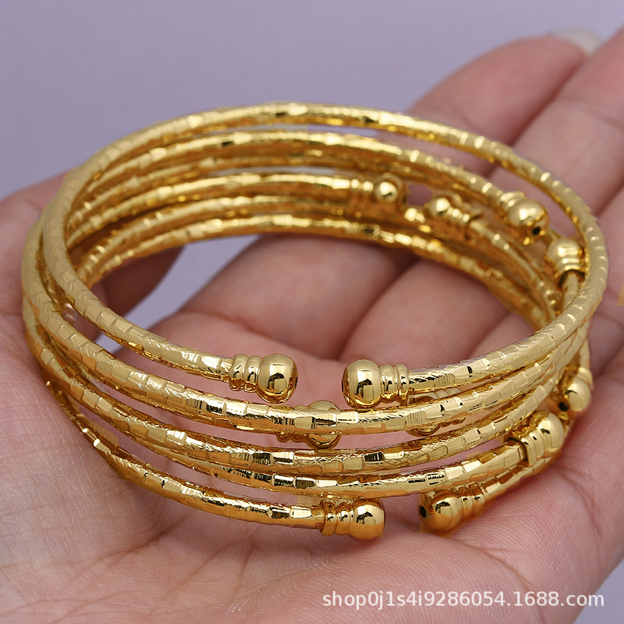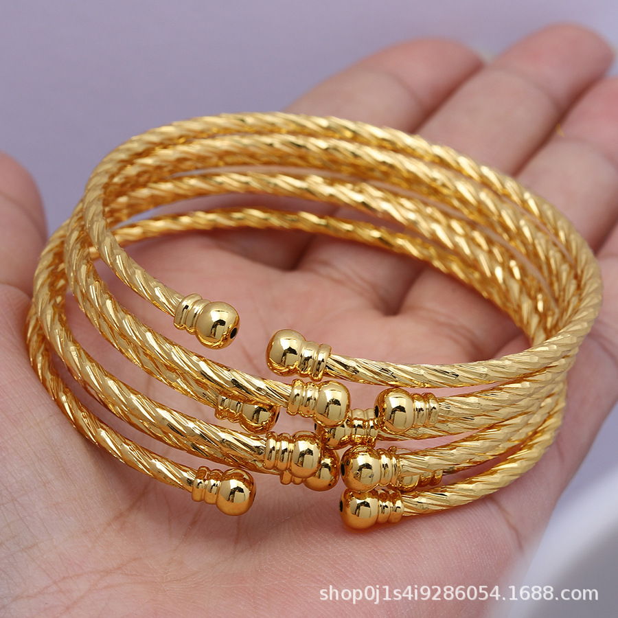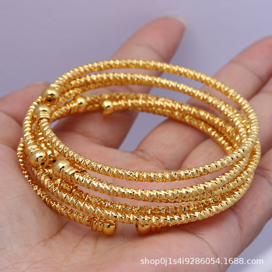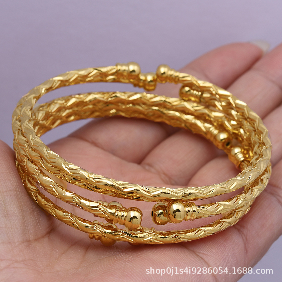 1Pcs Cross-Border Popular 3mm 24K Golden-Plated Double Bead Bracelet Middle East Dubai Ladies Bride Wedding
