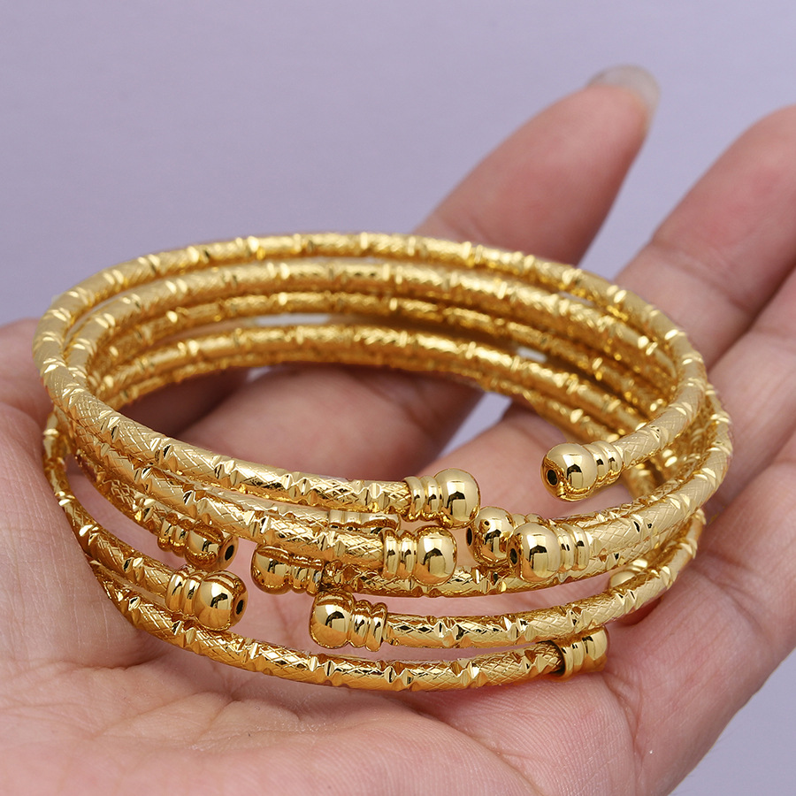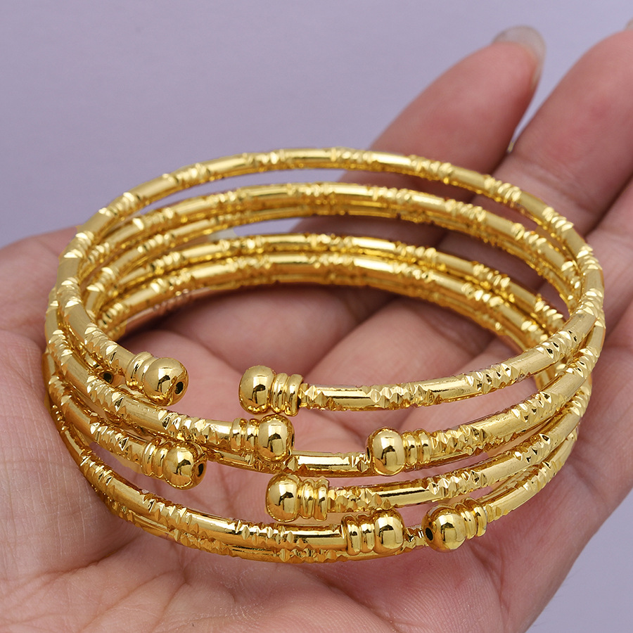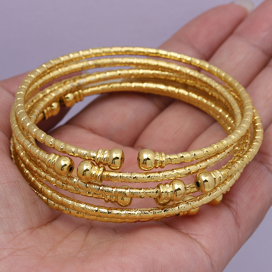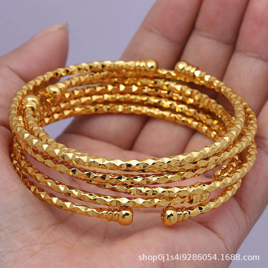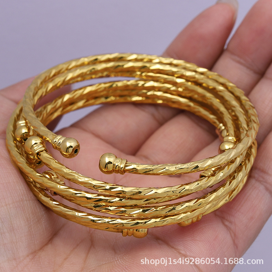 1Pcs Cross-Border Popular 3mm 24K Golden-Plated Double Bead Bracelet Middle East Dubai Ladies Bride Wedding
