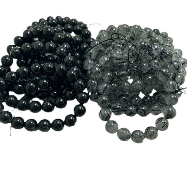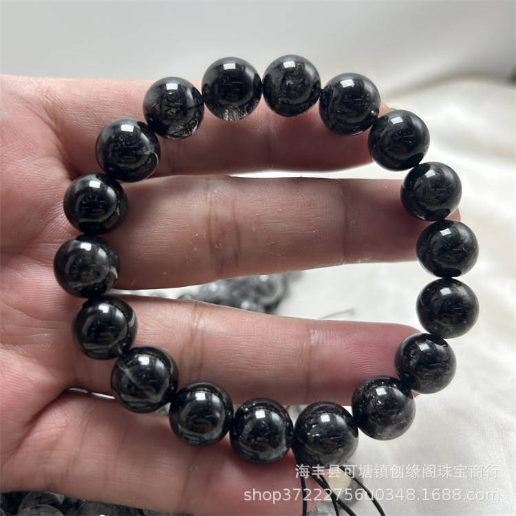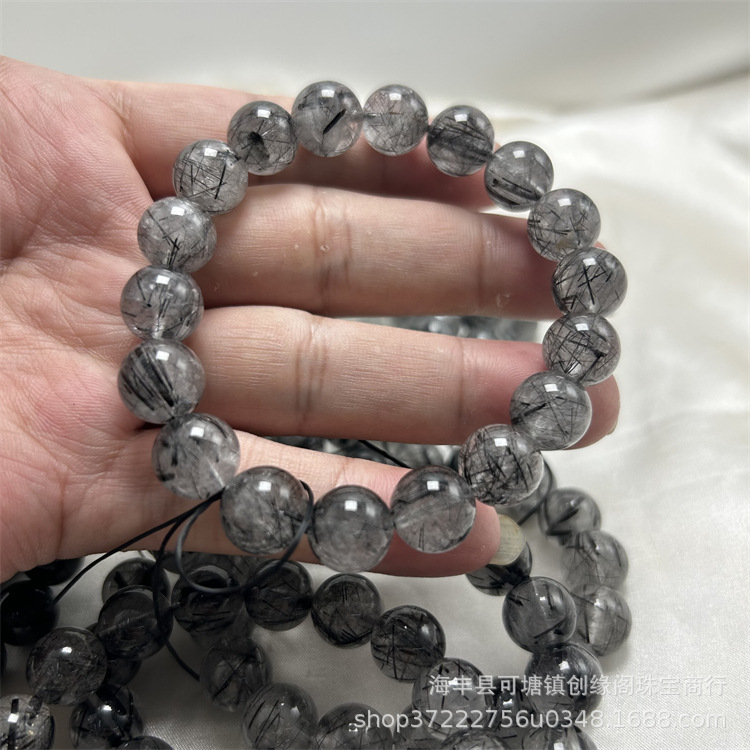 Natural black hair crystal round bead 12mm single ring bracelet crystal clear with thick hair factory wholesale