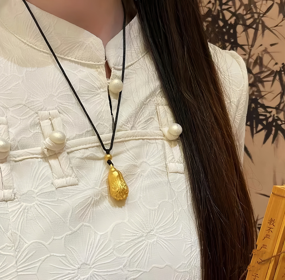 The Same Vietnamese Sand Gold Lucky Cabbage Pendant from the Gold Store, Men's and Women's Wealth Pendant Necklace, Sweater Chain Key Pendant