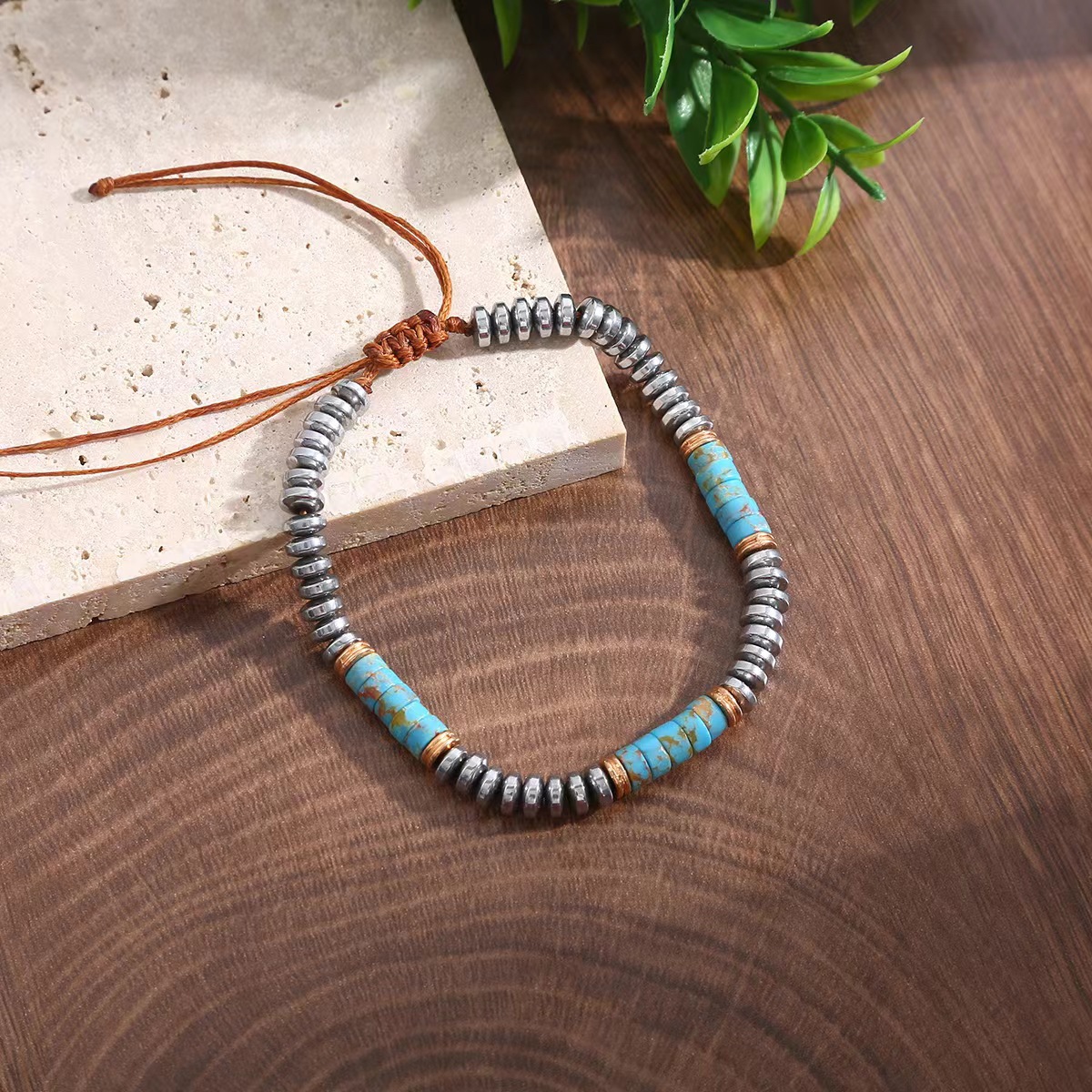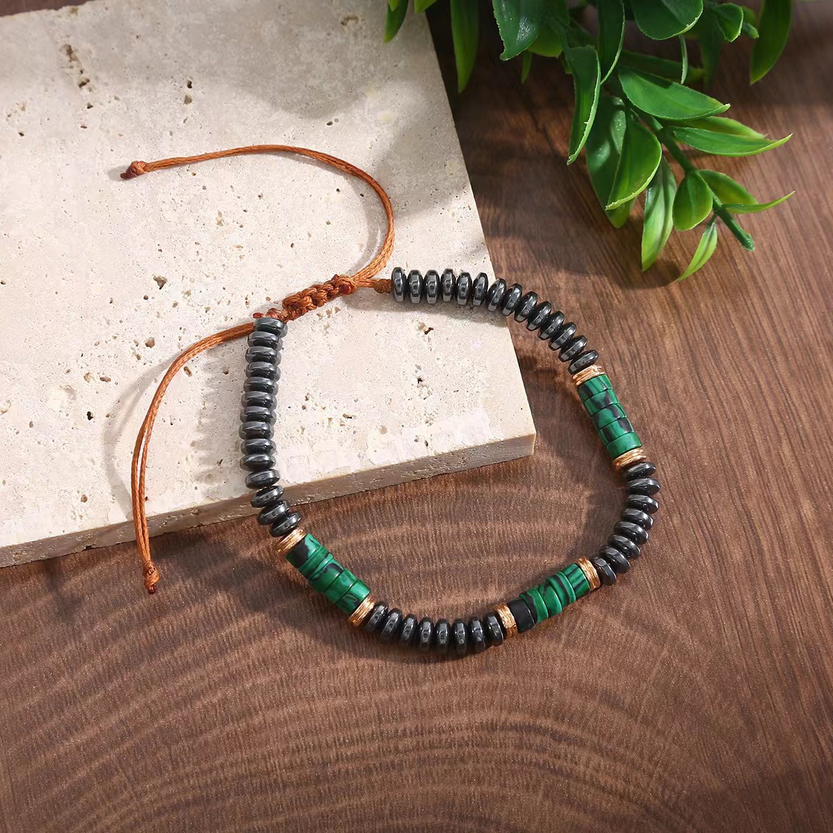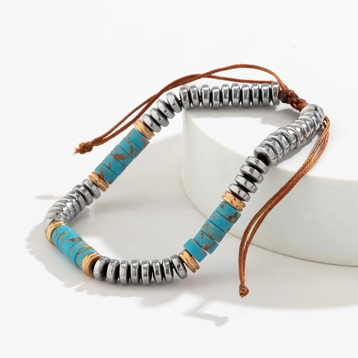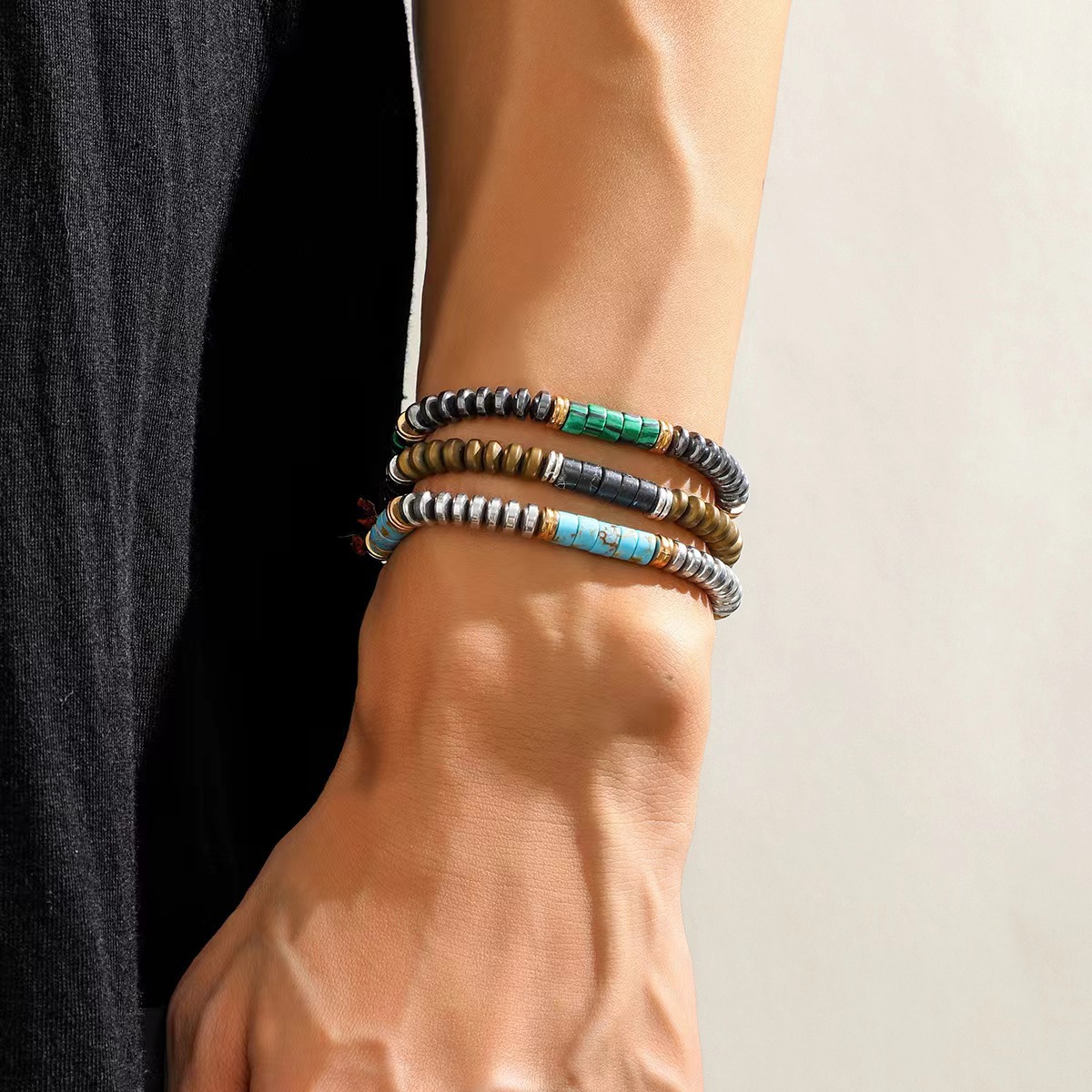 Europe and the United States cross-border Amazon Temu Xiyin explosion hot selling black stone turquoise handmade beaded pull bracelet men