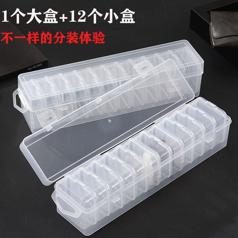 产品特点:这款由14个方格装在一个盒子,里每个小瓶子都有独立的盖子,适合装药品、小首饰、珠绣 钻秀配件盒,DIY爱好者收纳配件,各类零碎物品的包装收纳,小巧便携,更好地规划打理您的工作和居家生活!