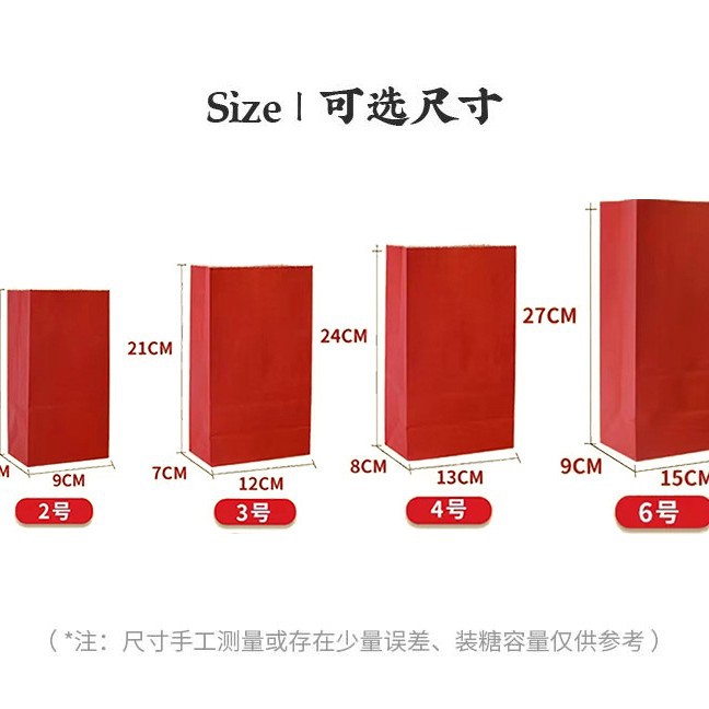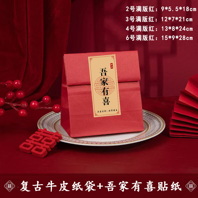 Specification model: 80g thickened paper bag + wedding candy self-adhesive [9*4]; [50 pieces] no. 6 full version red 15*9*27cm