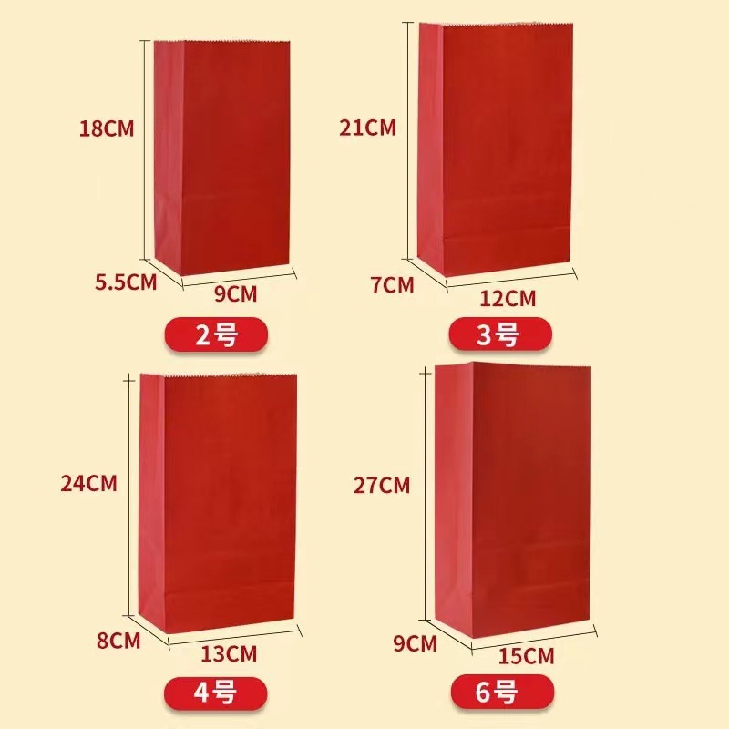 Specification model: [special offer] 80g thickened paper bag without self-adhesive; [50 pieces] no. 2 full version red 9*6*18cm