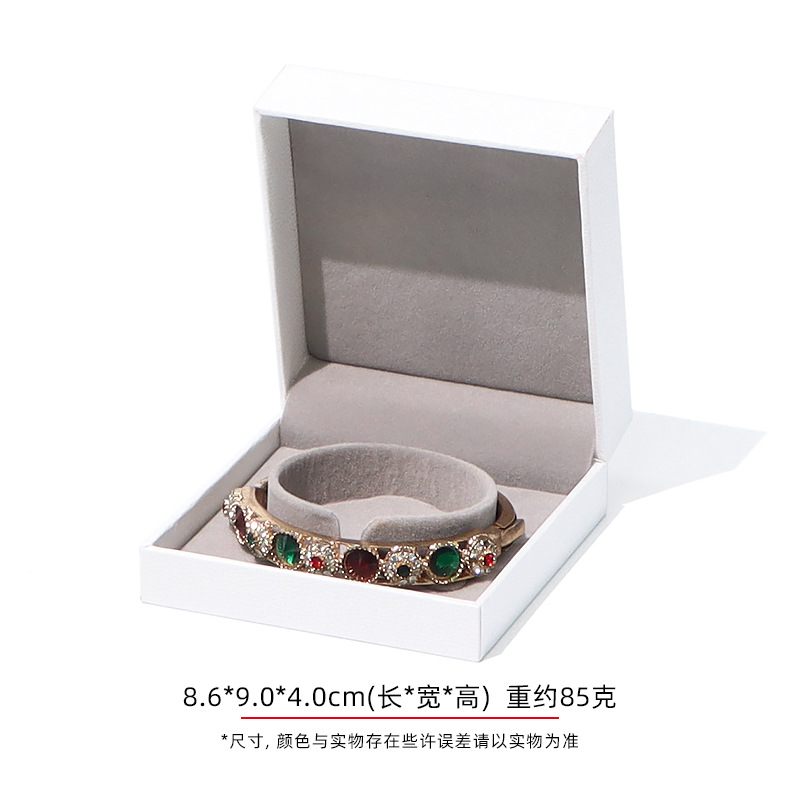 Specifications and models: White bracelet box [8.8*9.1*4cm]; leather filled paper jewelry box