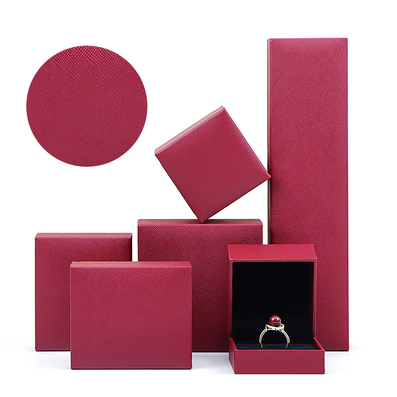 Specifications and models: Red diagonal pattern pendant box [7*8*3.5cm]; leather-filled paper jewelry box