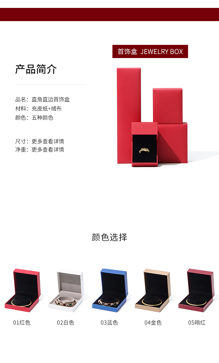 Specifications and models: Red weicai middle ring box [6*6*4.5cm]; leather-filled paper jewelry box