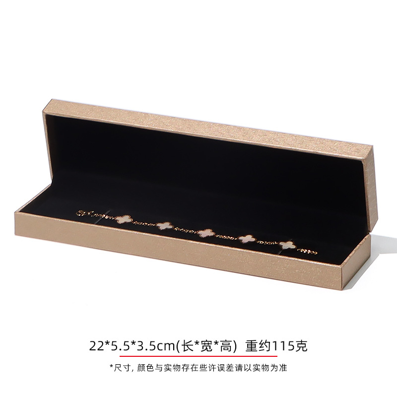Specifications and models: Gold bracelet box [22*5.5*3.3cm]; leather-filled paper jewelry box