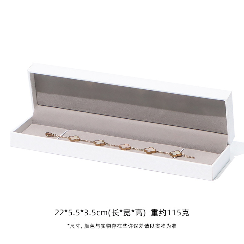 Specifications and models: White bracelet box [22*5.5*3.3cm]; leather-filled paper jewelry box