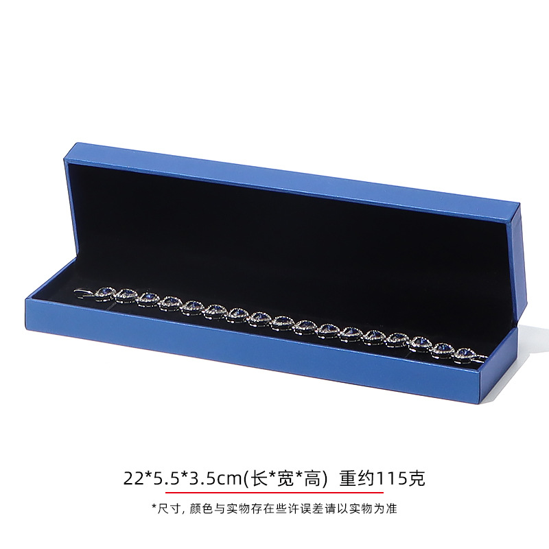 Specifications and models: Blue weicai bracelet box [22*5.5*3.3cm]; leather-filled paper jewelry box