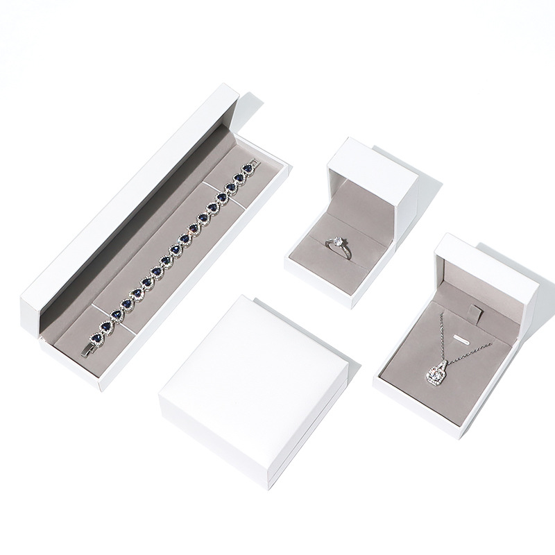 Specifications and models: White pendant box [7*8*3.5cm]; leather filled paper jewelry box
