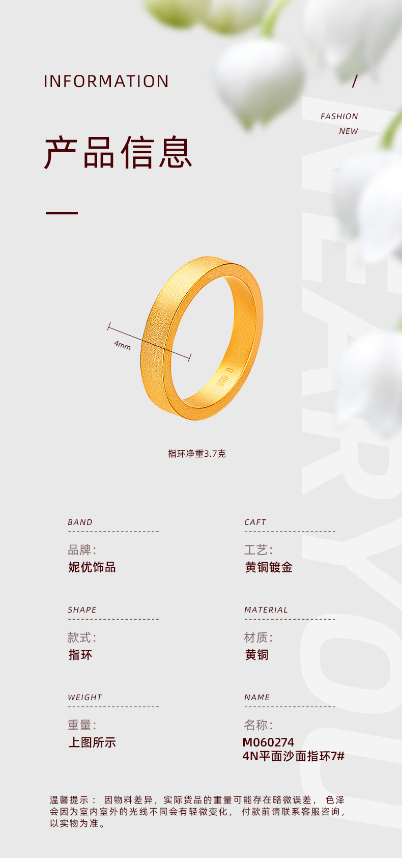 Color: 4n plane sand surface ring