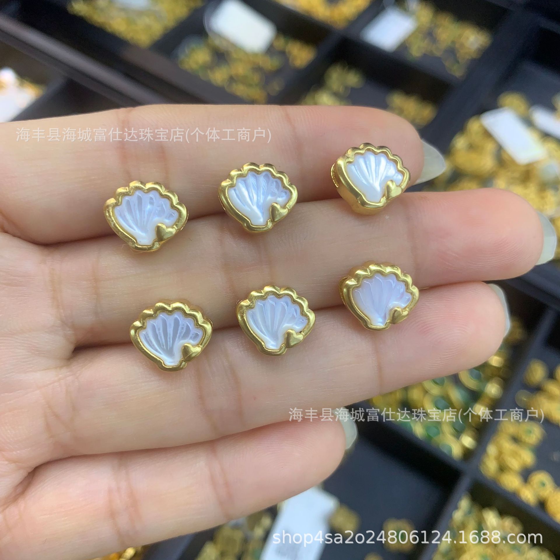 Wholesale S925 Silver Inlaid Natural White Shell Scallop Jewelry Clean and Crack Free DIY Accessories through Hole Accessories