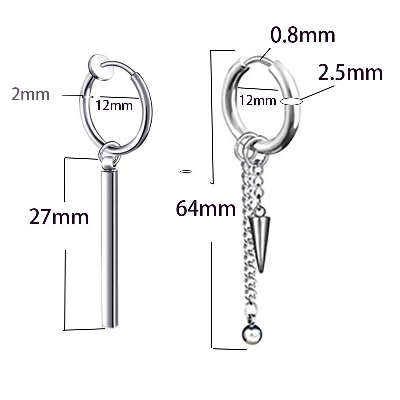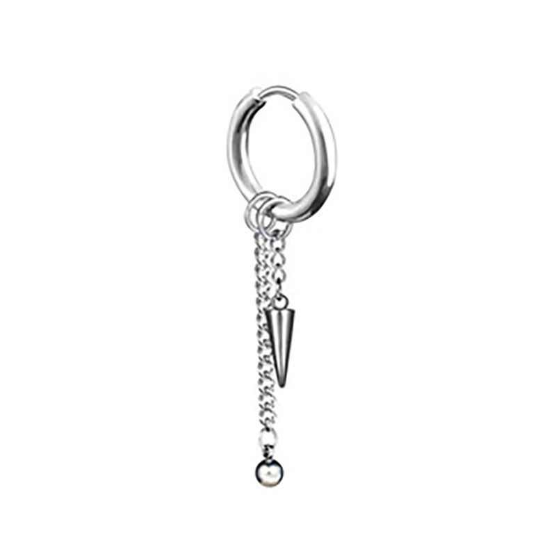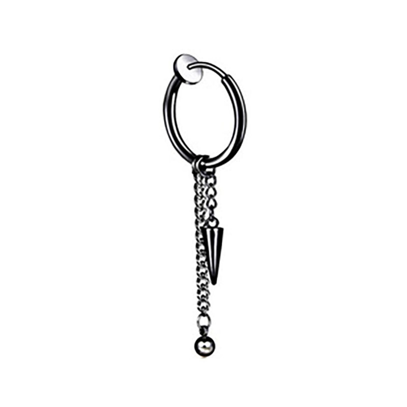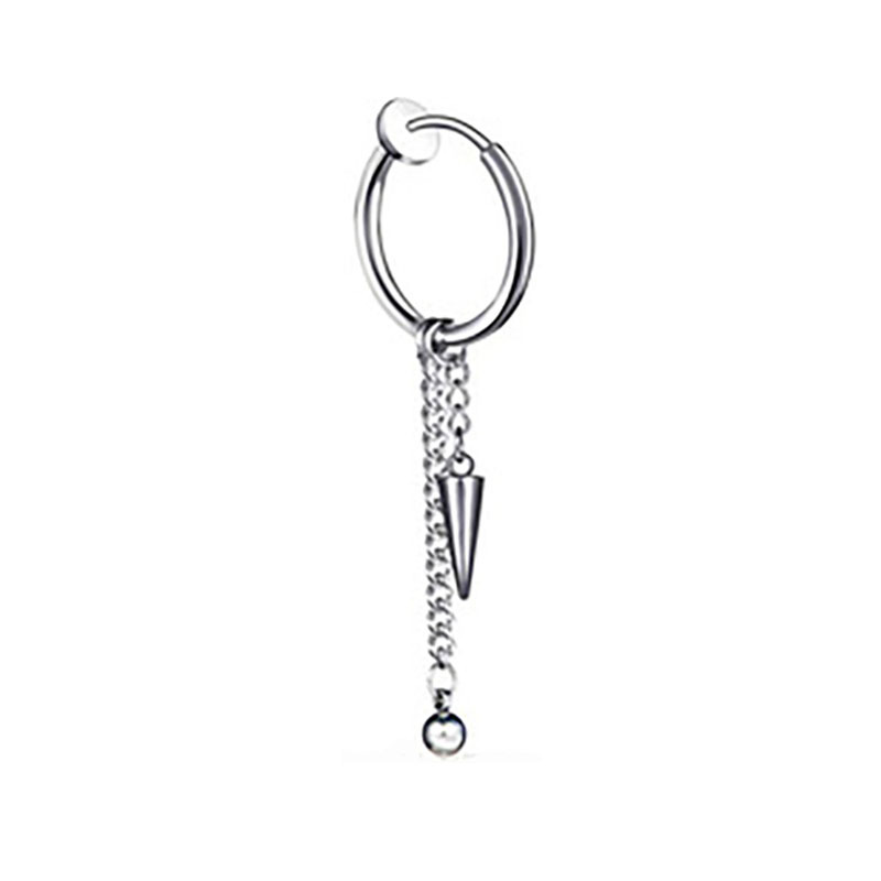 Korean Style Premium Tassel Chain Earrings, Round Bar Earrings for Men, Titanium Steel Ear Hoops, Non-Pierced Ear Clips, Factory in Stock
