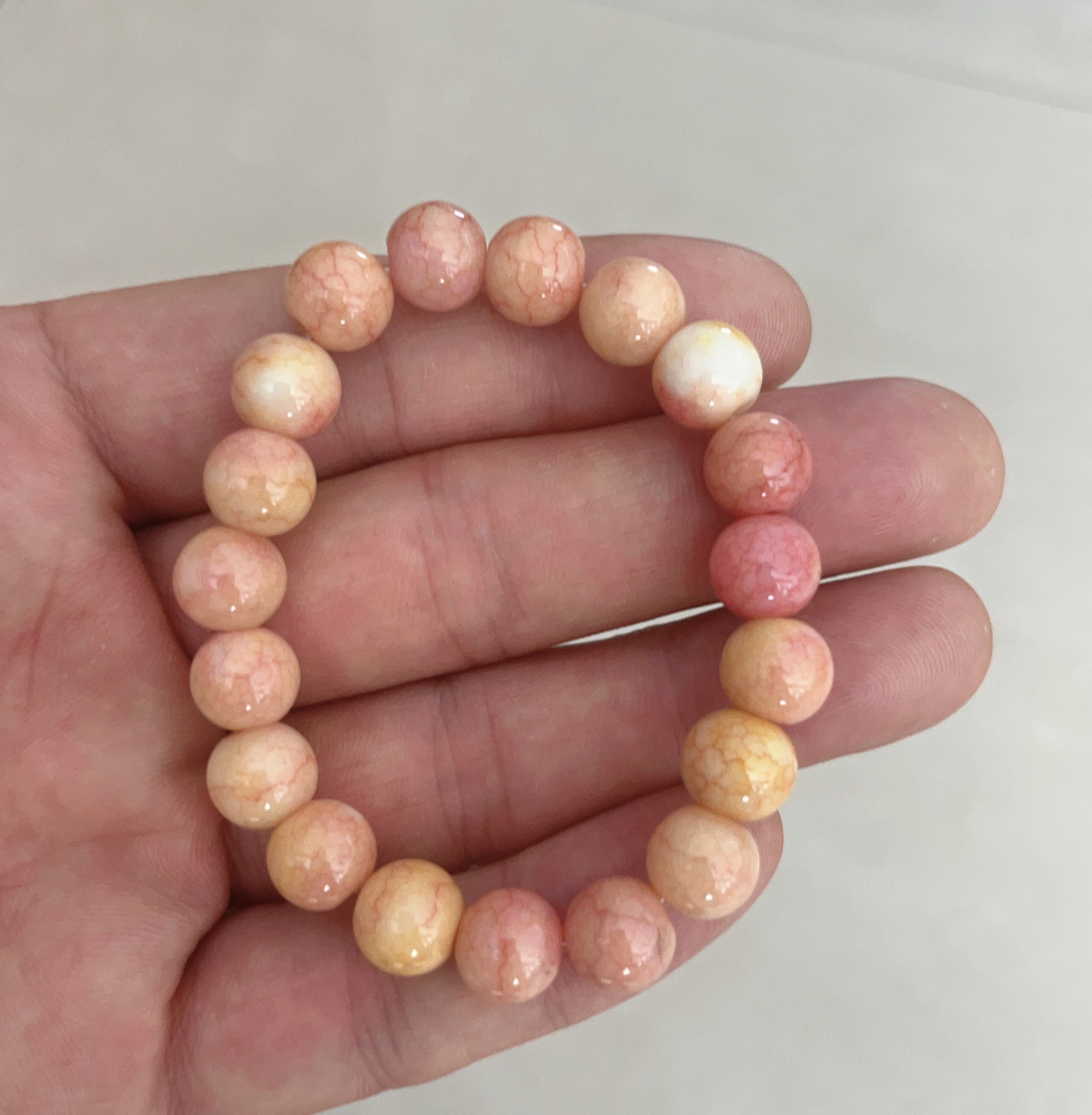 Color: Cz—74 magnetic beads and jade crumbs—pink and yellow two-color