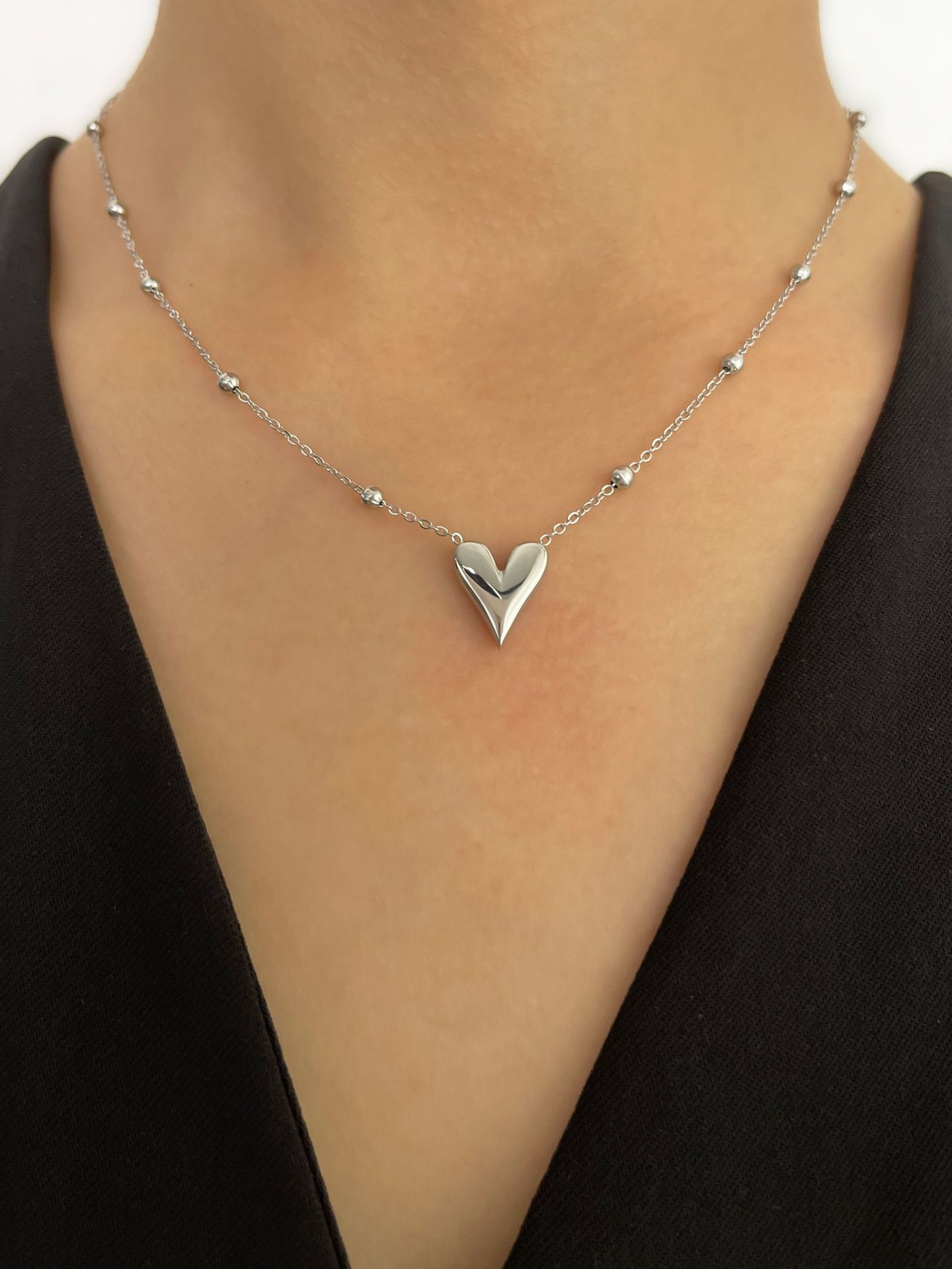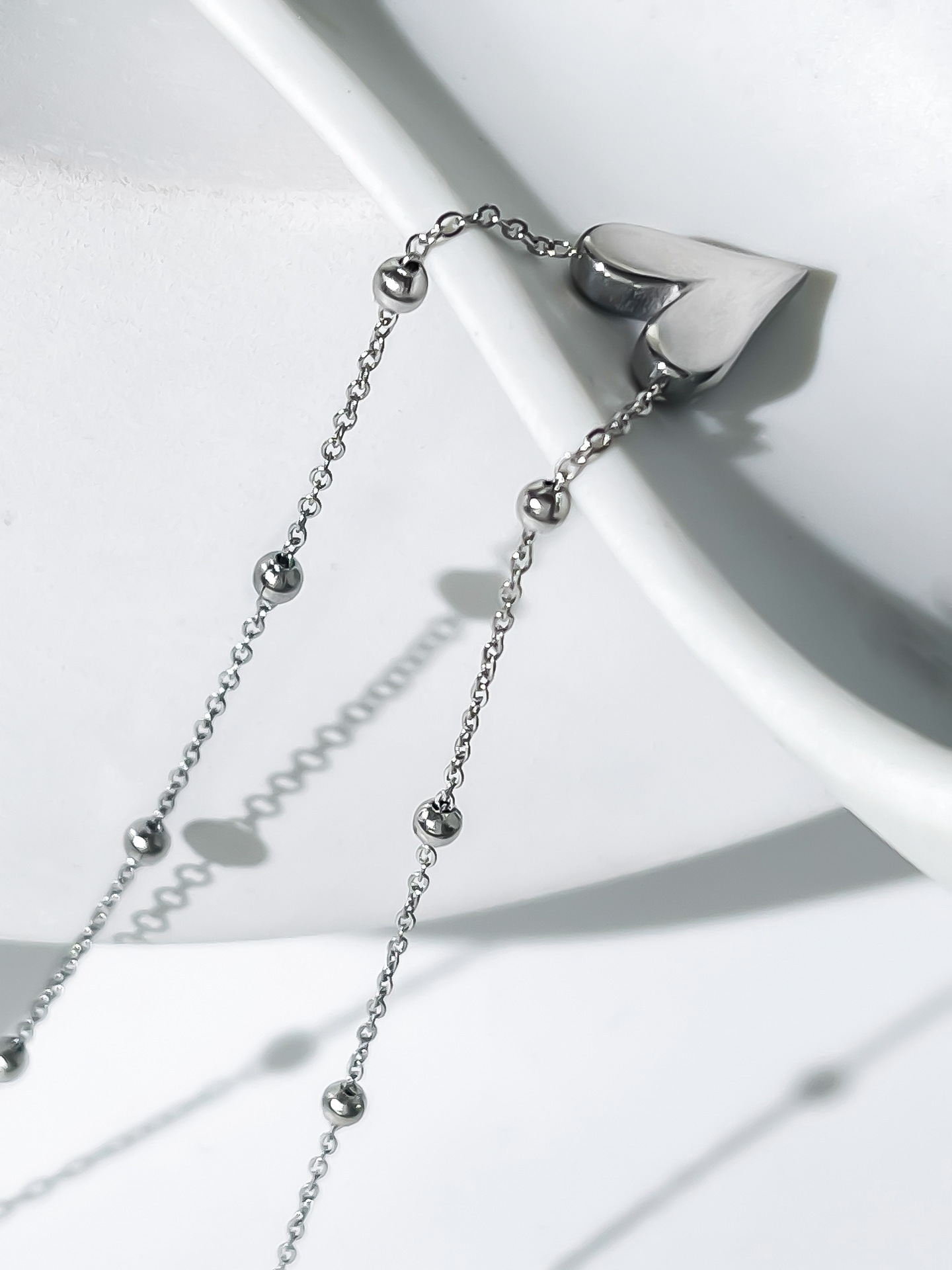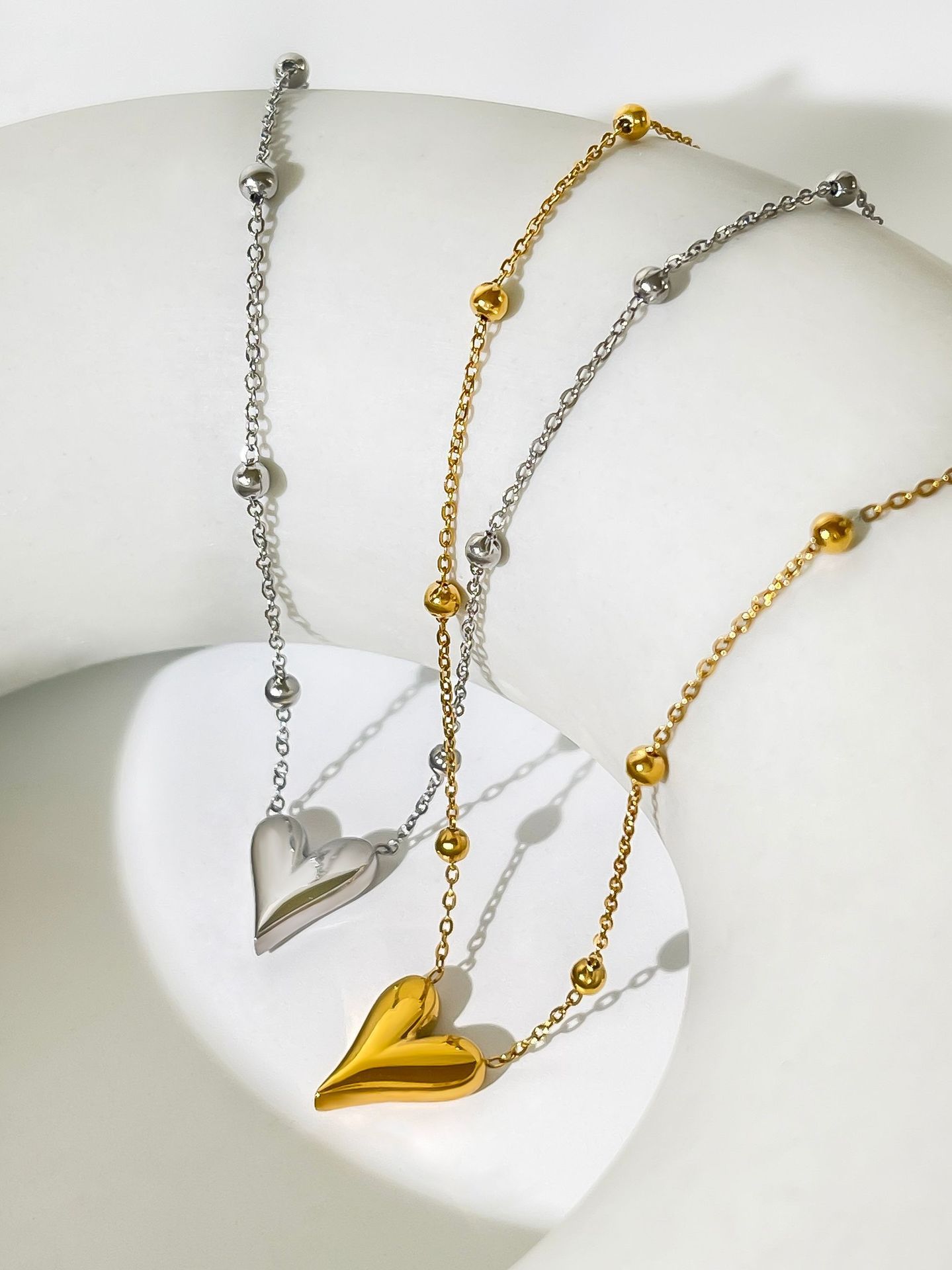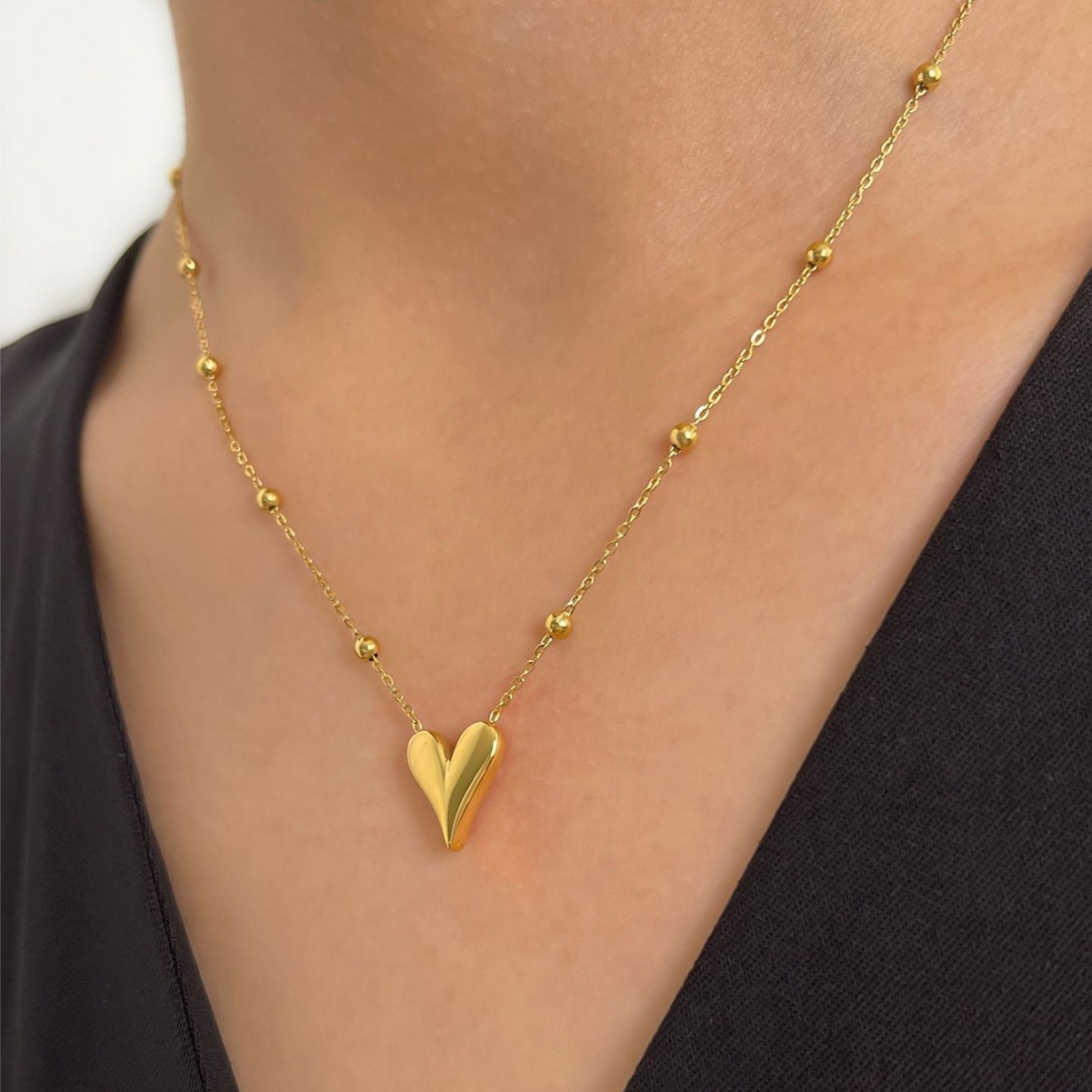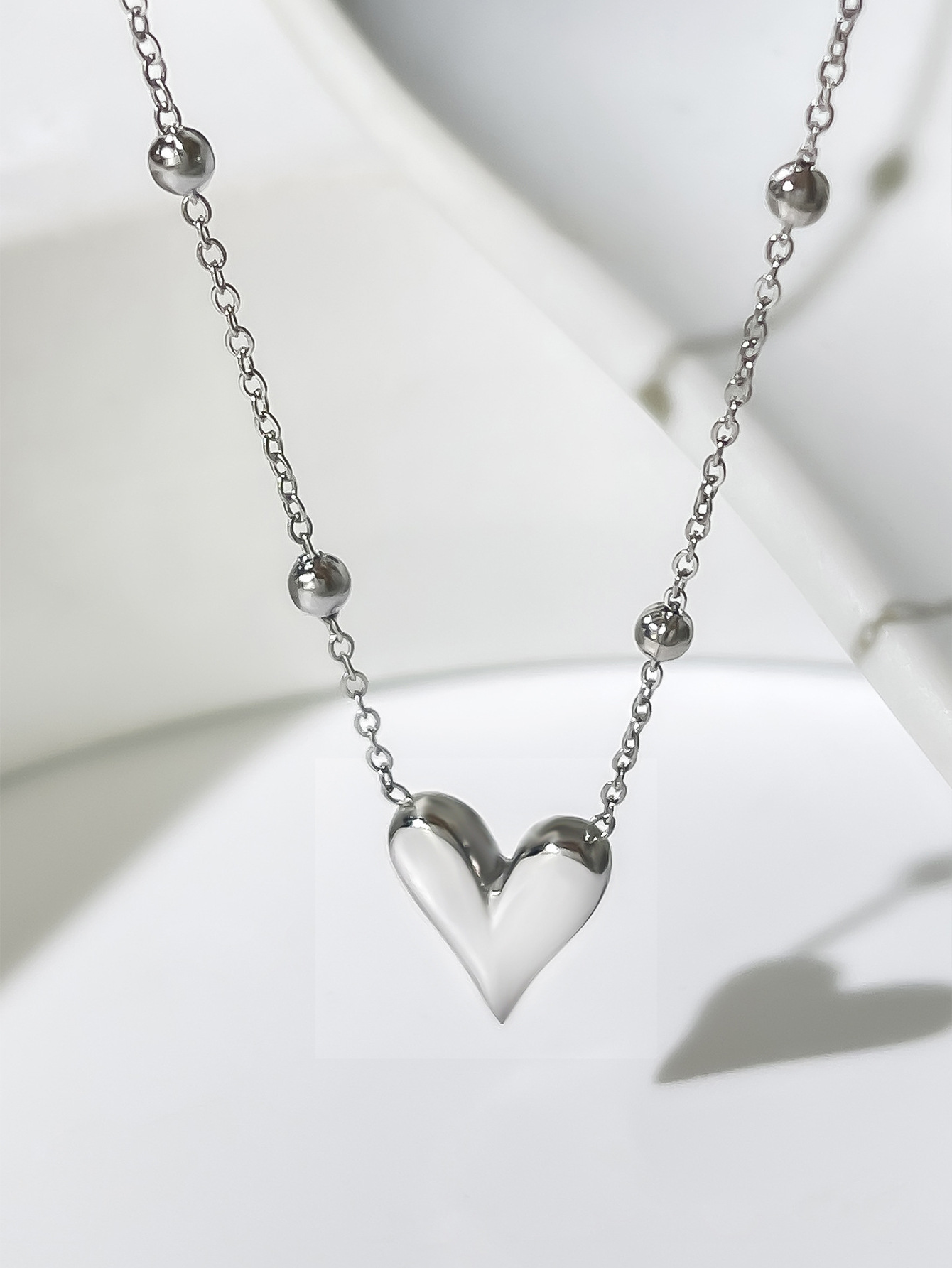 Cross-border Simple Small Peach Heart Bead Chain Gloss Titanium Steel Pendant Gold Plated Without Fading All-match Niche Necklace for Women