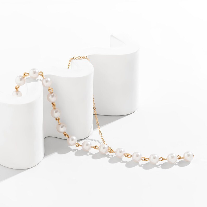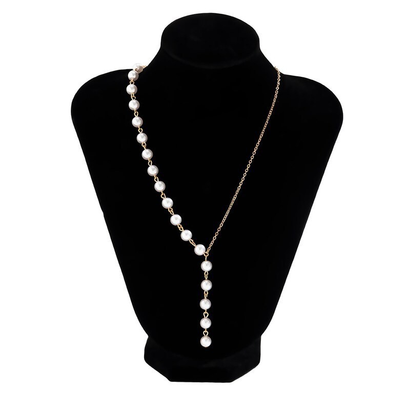 Asymmetric Imitation Pearl Necklace Women's European and American Spring and Summer New Niche Design Sexy Y-shaped Dress with Accessories
