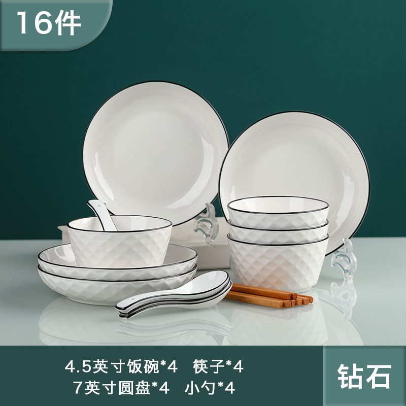 Color: 4 bowls 4 plates 4 spoons 4 chopsticks [diamond]]