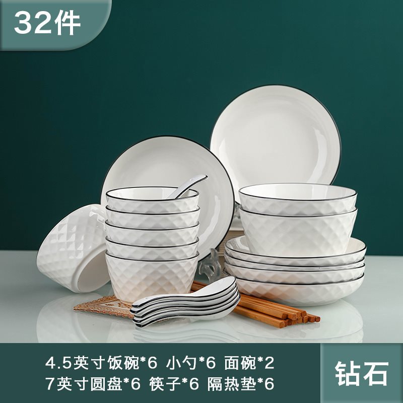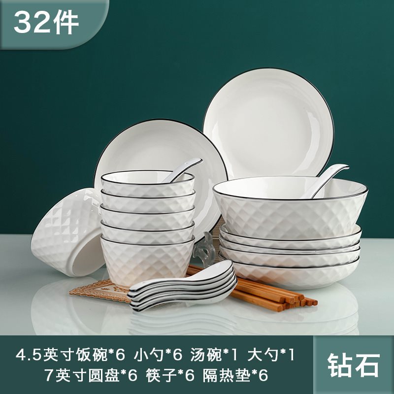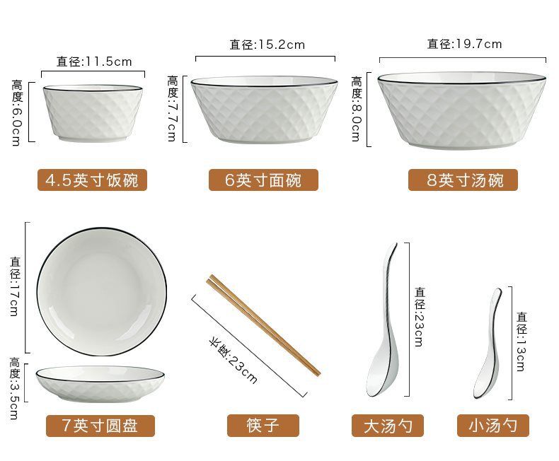 Color: 6 bowls 6 plates 6 spoons 6 chopsticks [diamond]]