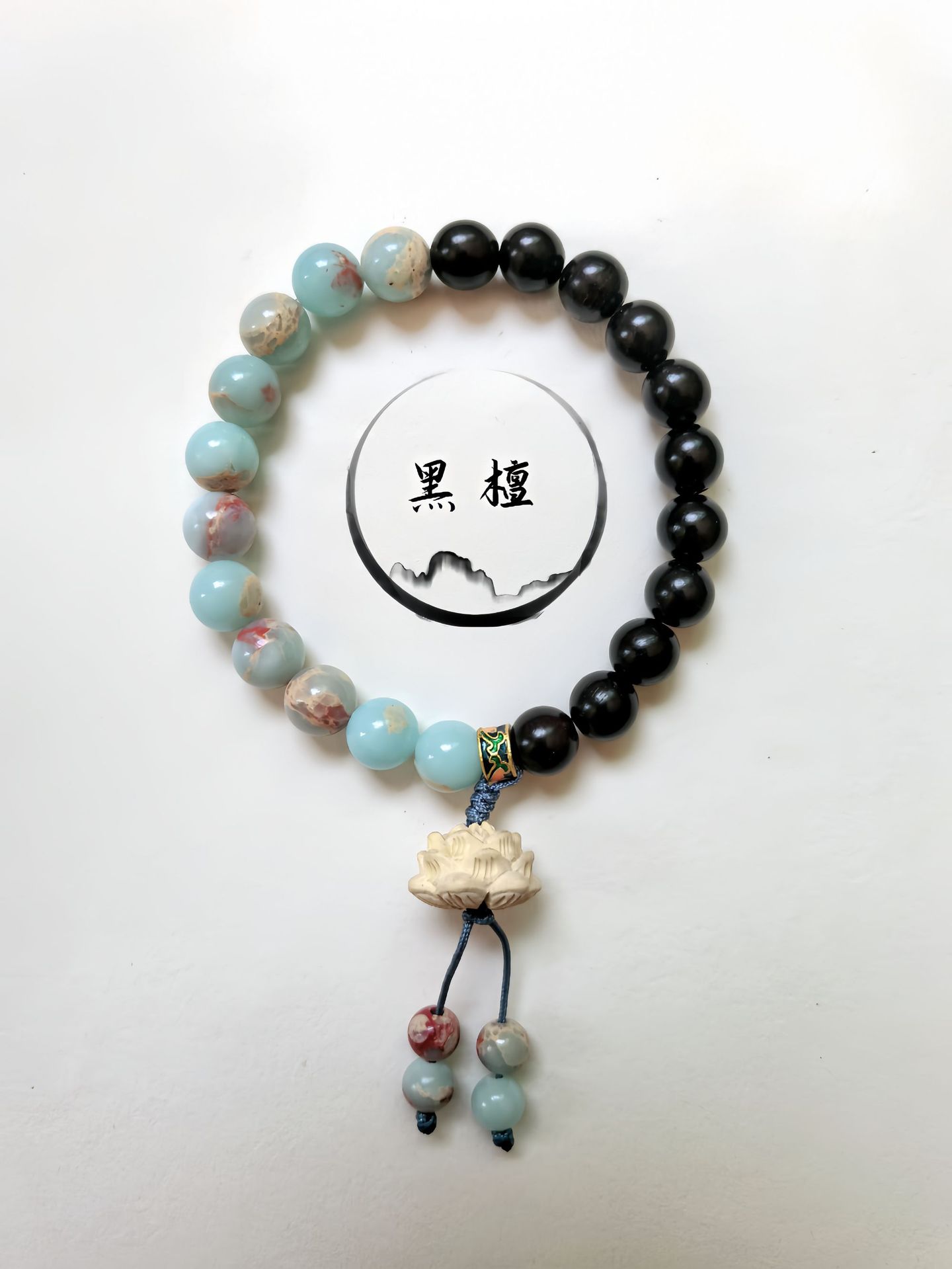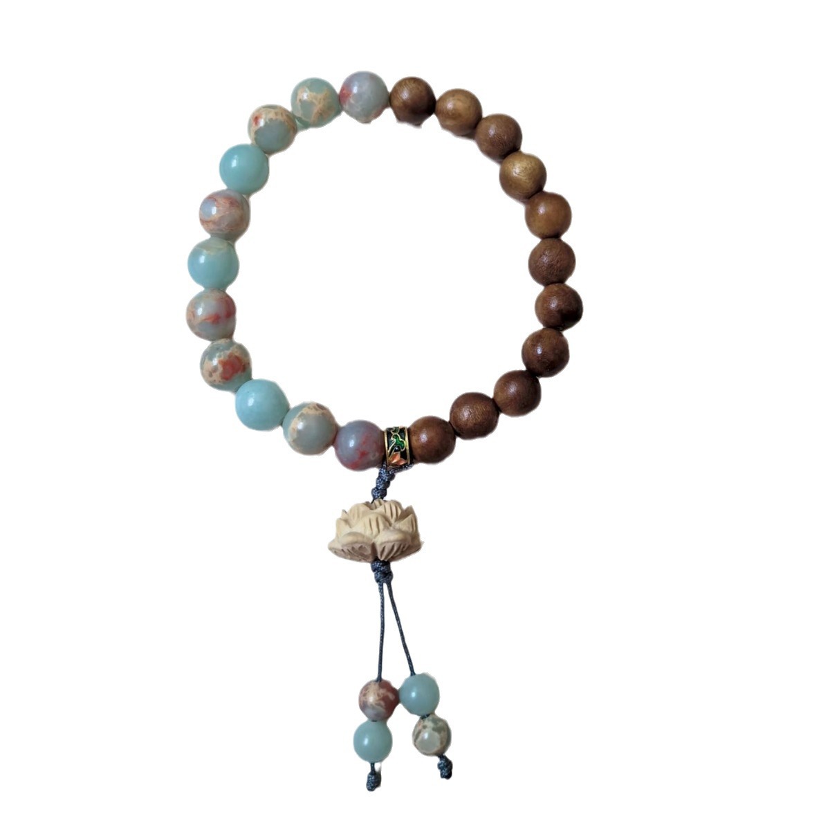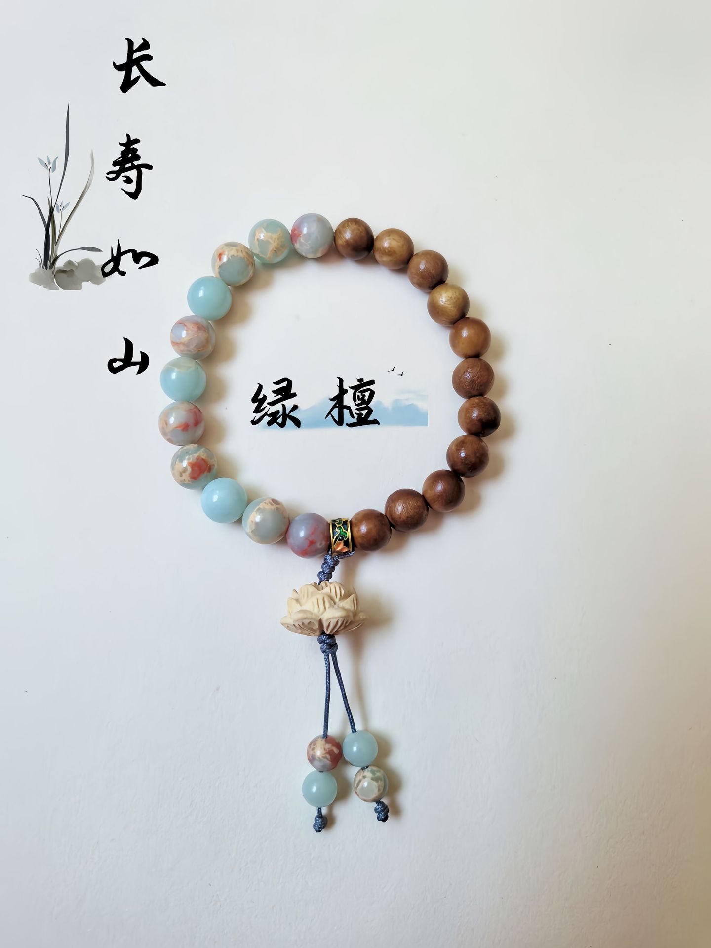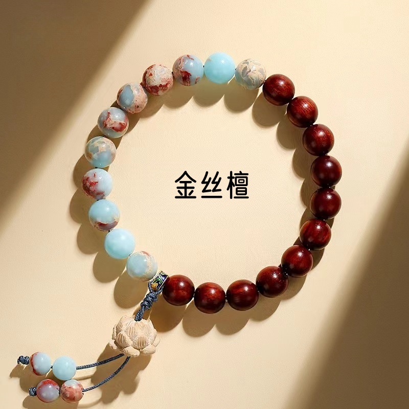 Lotus Shoushan Stone Bracelet New Chinese Green Sandalwood Old Sandalwood Bracelet Women's Zen Wooden Buddha Beads Men's Transfer Beads