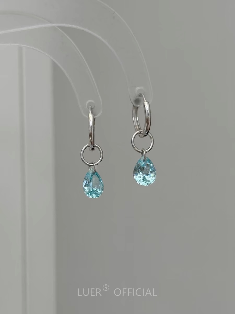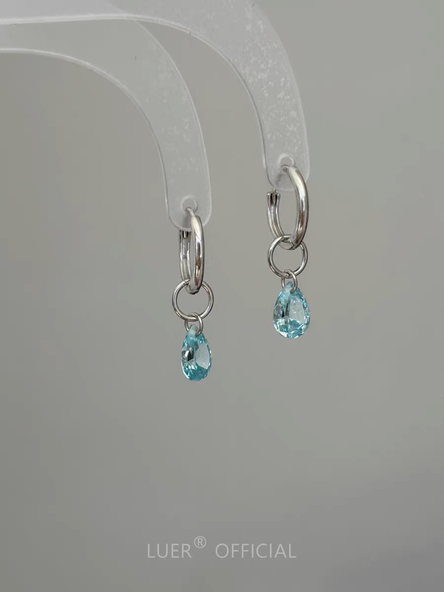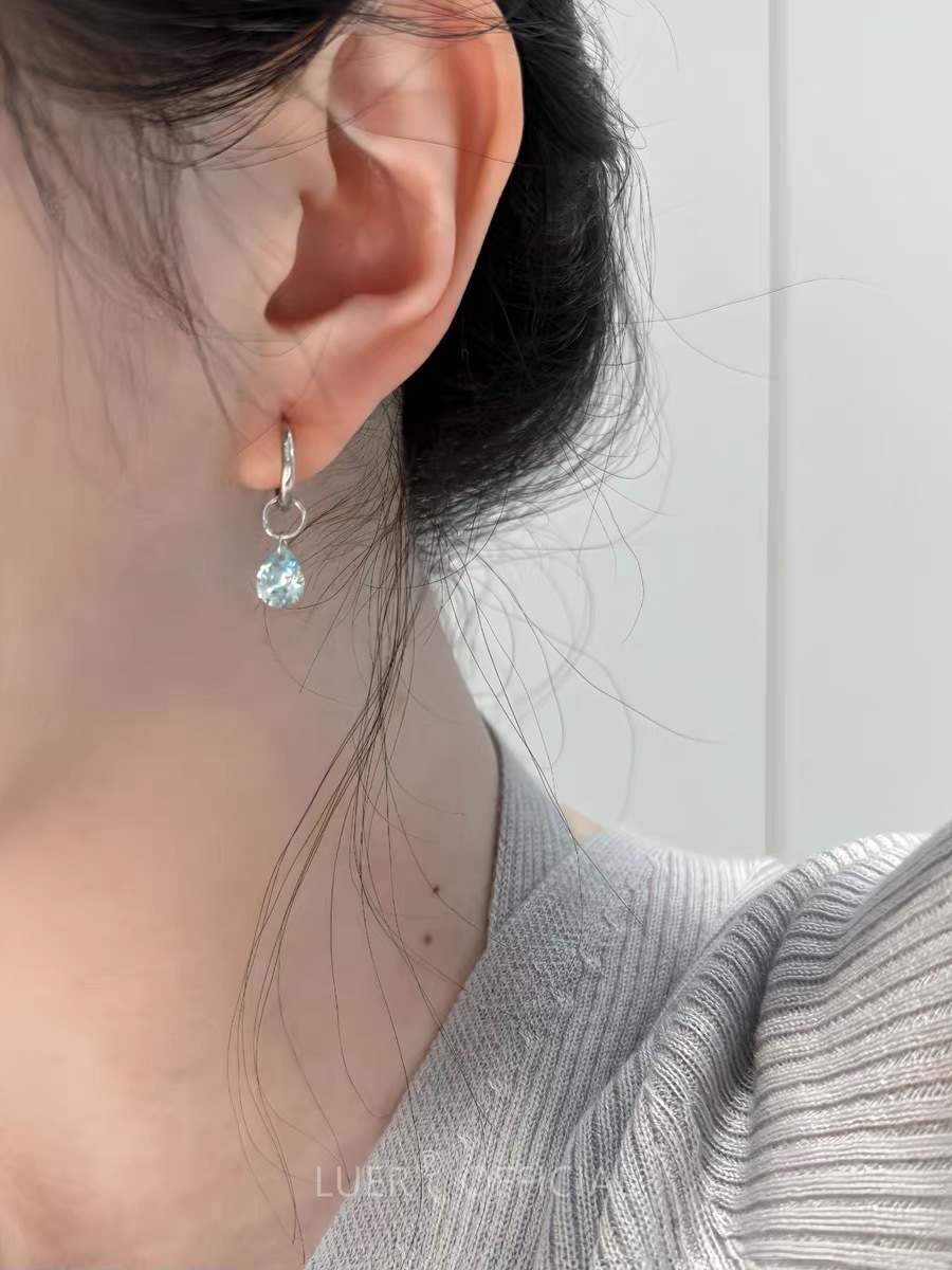 By weekend South Korea import lake water light blue zircon! Body S925 Sterling Silver Elegant Versatile Earrings Earrings Ins Style