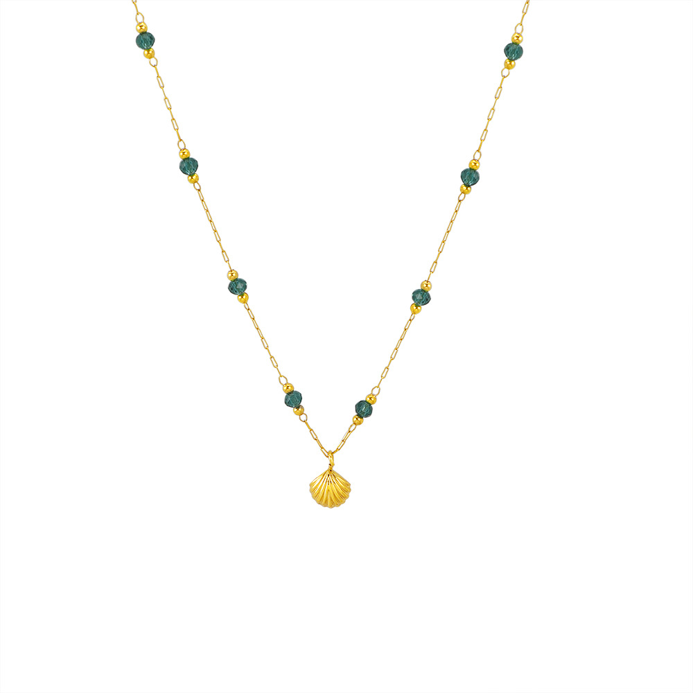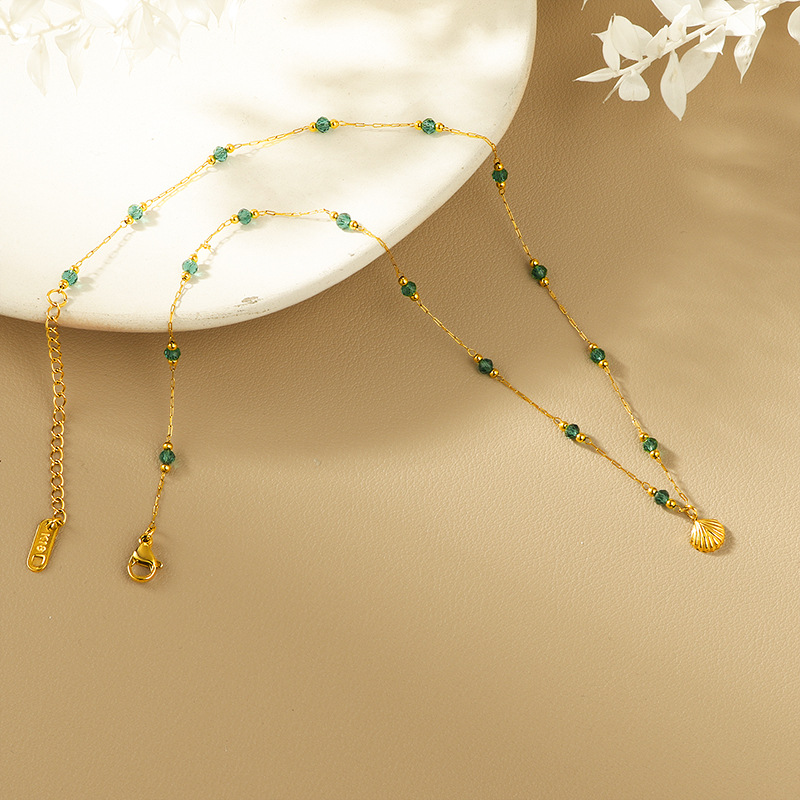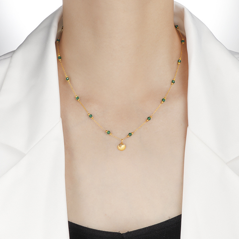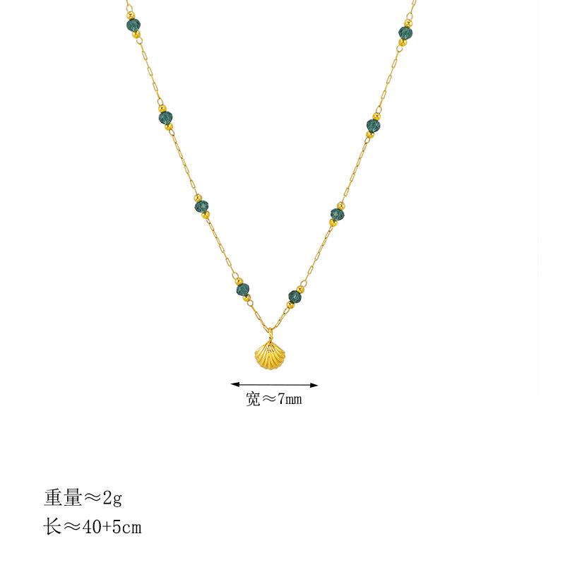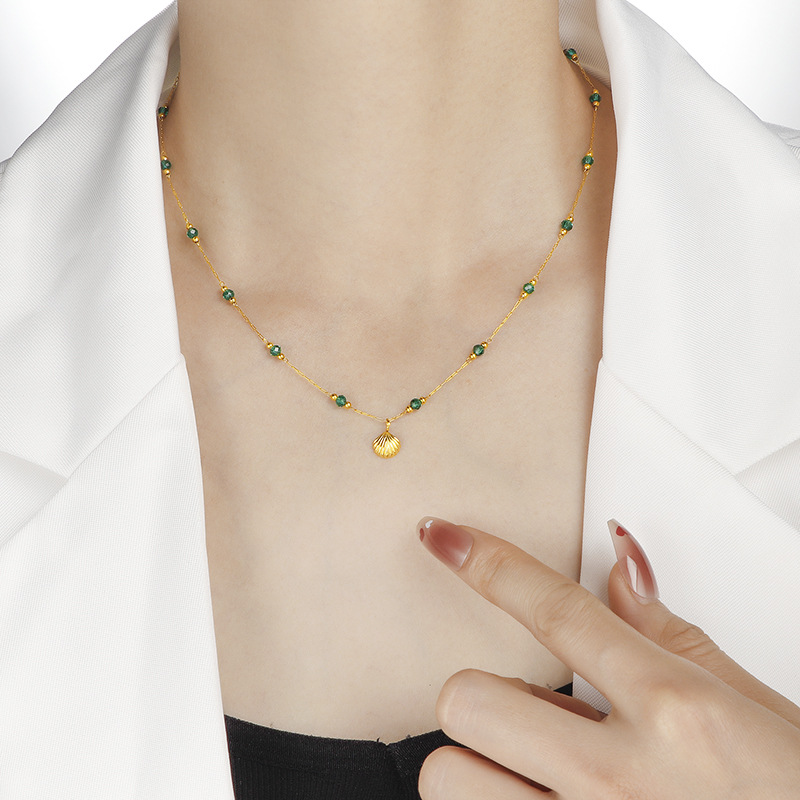 Vintage Emerald Diamond Shell Necklace Niche Design Unique High-end Sense Sexy Clavicle Chain Unfading Titanium Steel Women