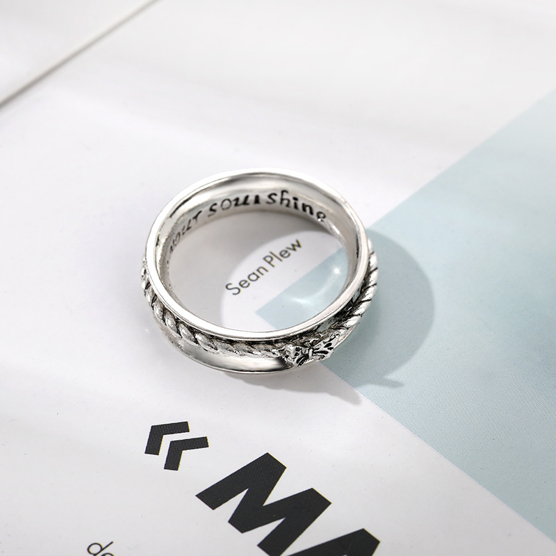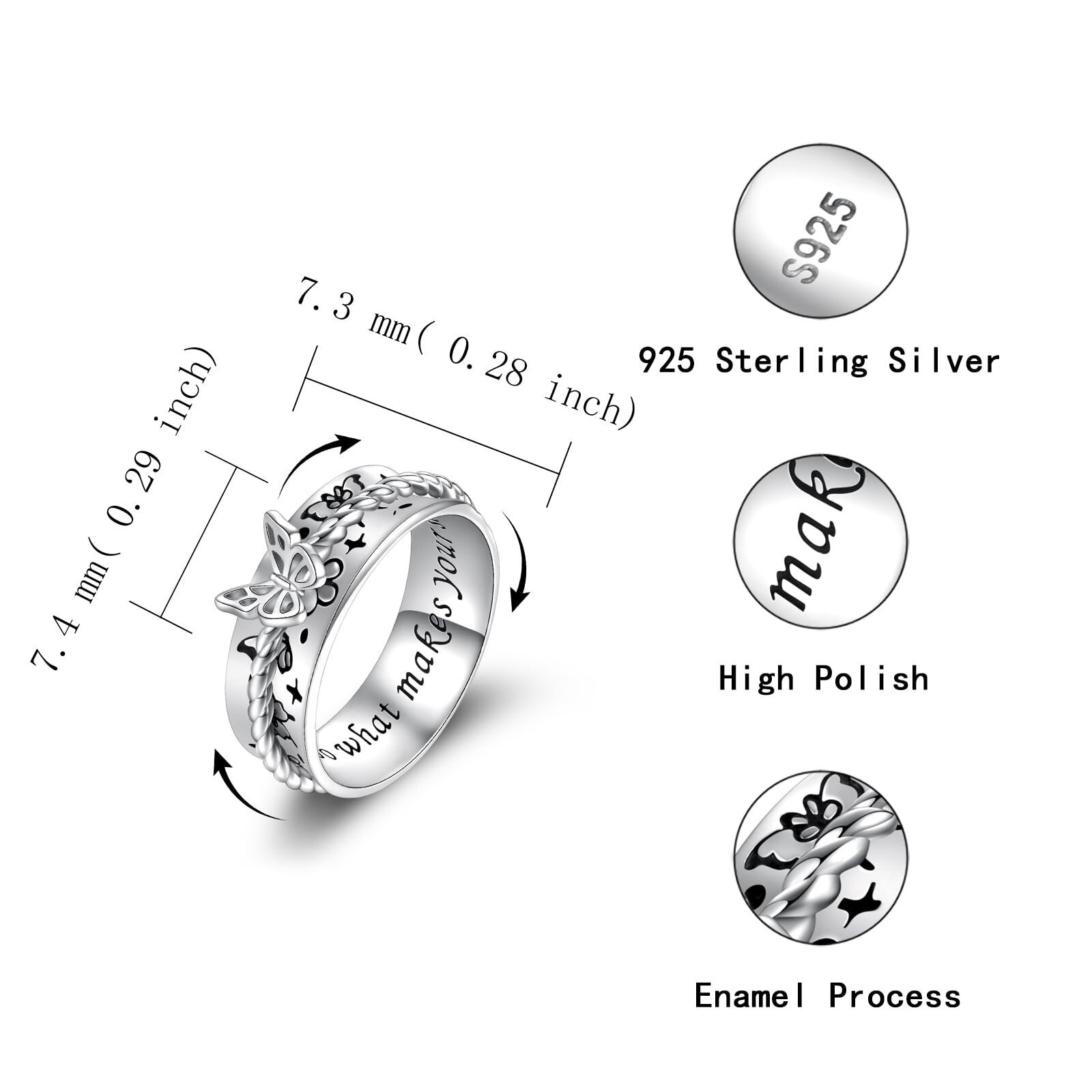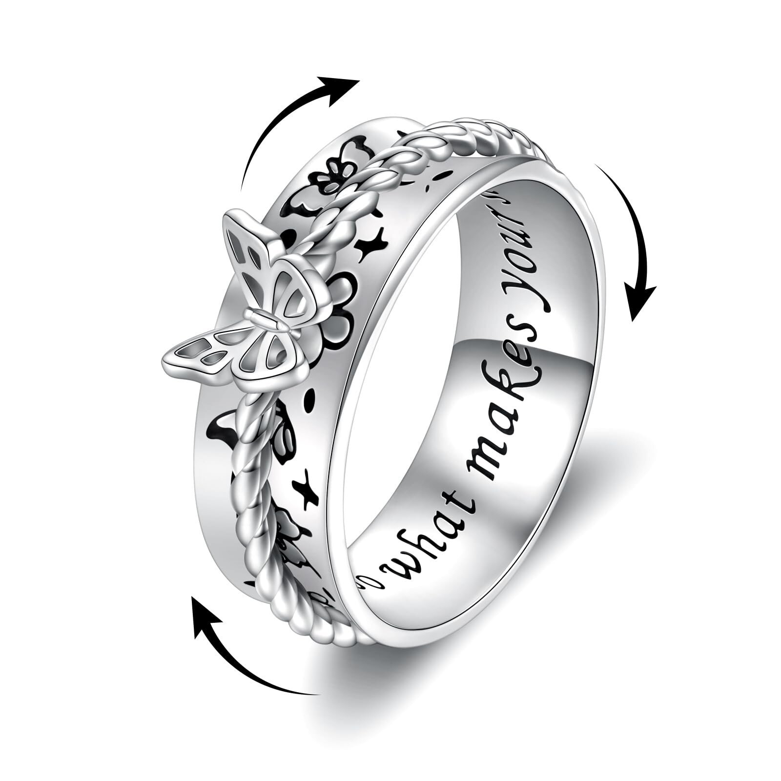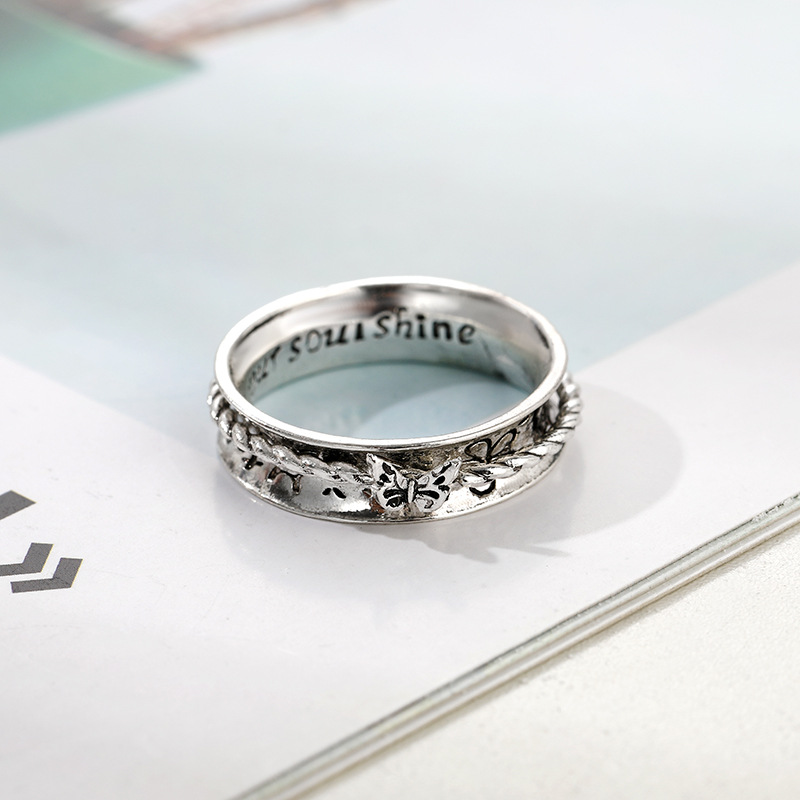 Yingqi Cross-border Literary Retro Rotatable Butterfly Ring Text Carving Butterfly Bird Ring Ring