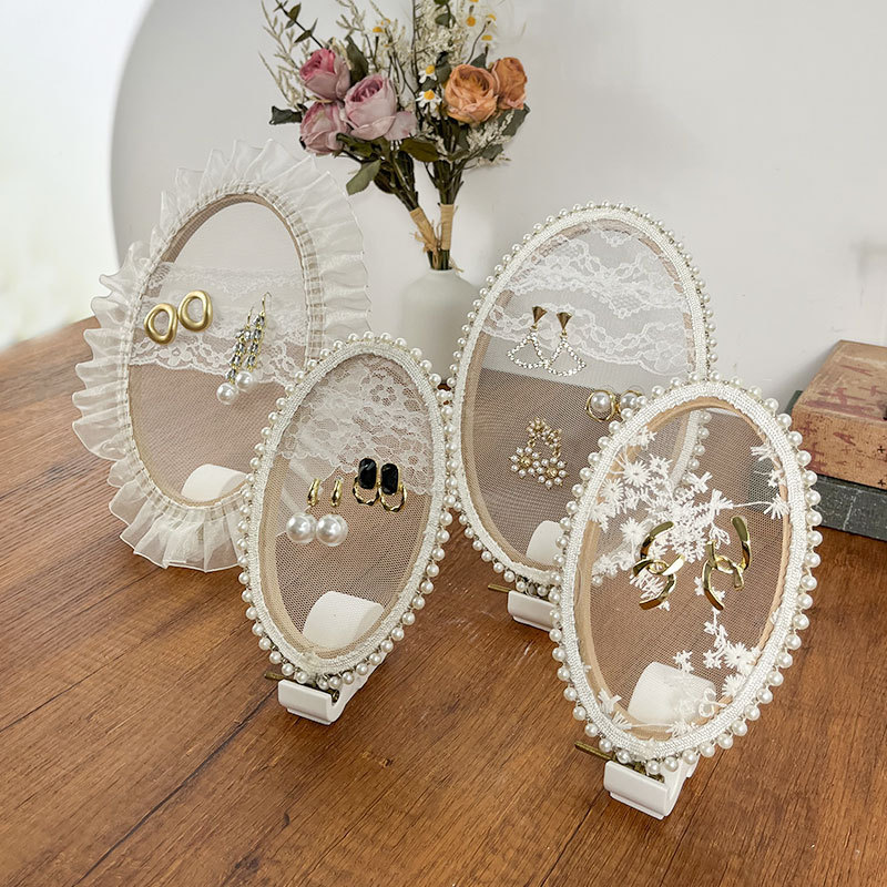 Jewelry Display Rack Wooden Embroidered Stretch Earrings Shelf Jewelry Photography Props Shop Window Decoration Storage Rack