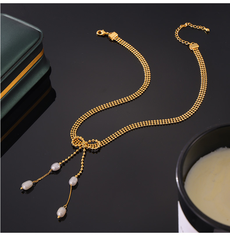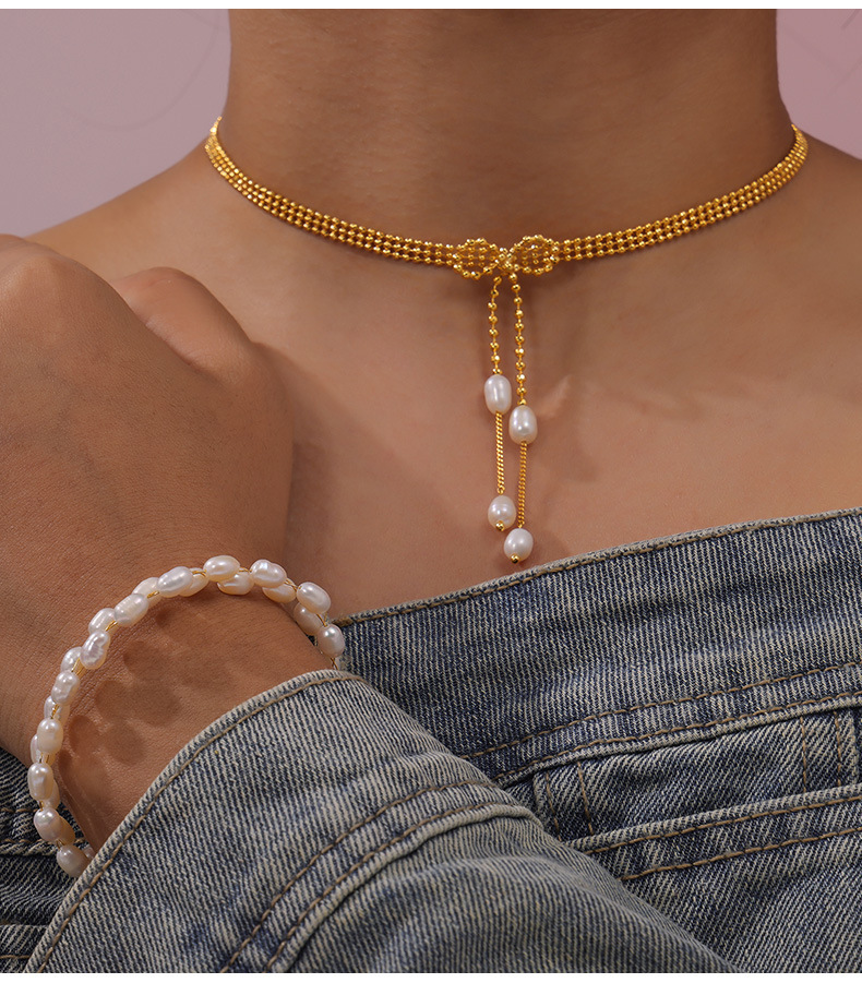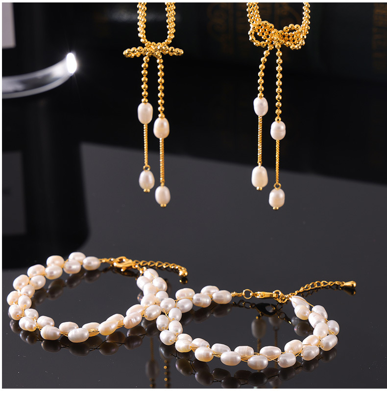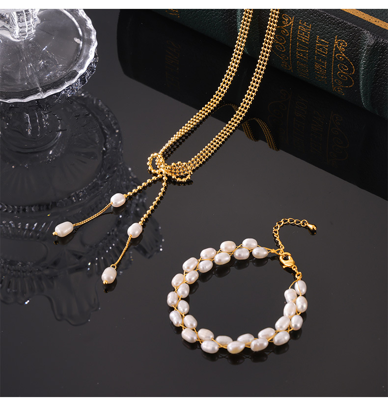 Europe and the United States new elegant temperament fresh water pearl bracelet copper material plated 18k gold necklace suit in stock wholesale
