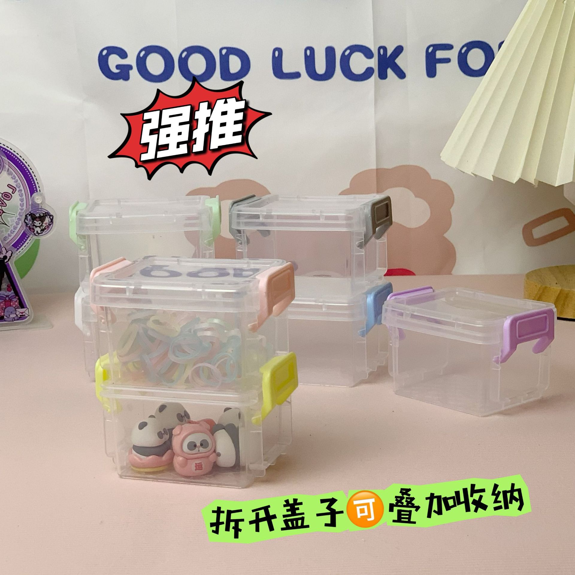 Macaron Stackable Desktop Storage Box Portable Cute Jewelry Box Stationery Handbook Sundries Transparent Box