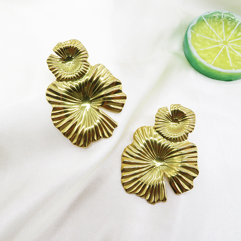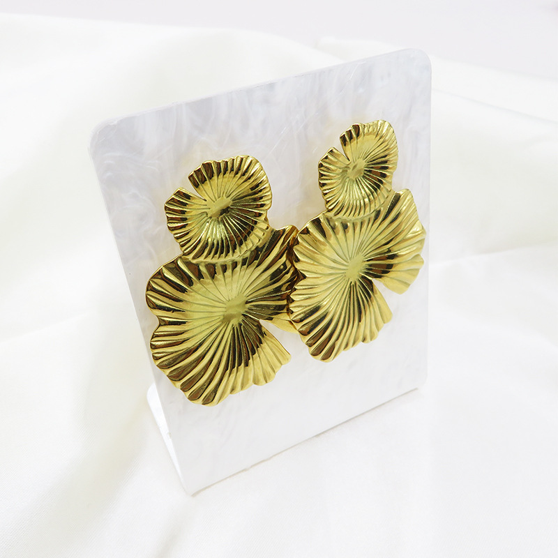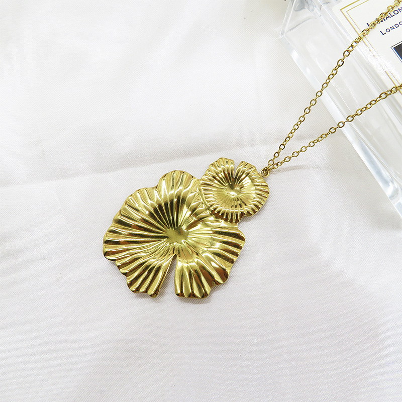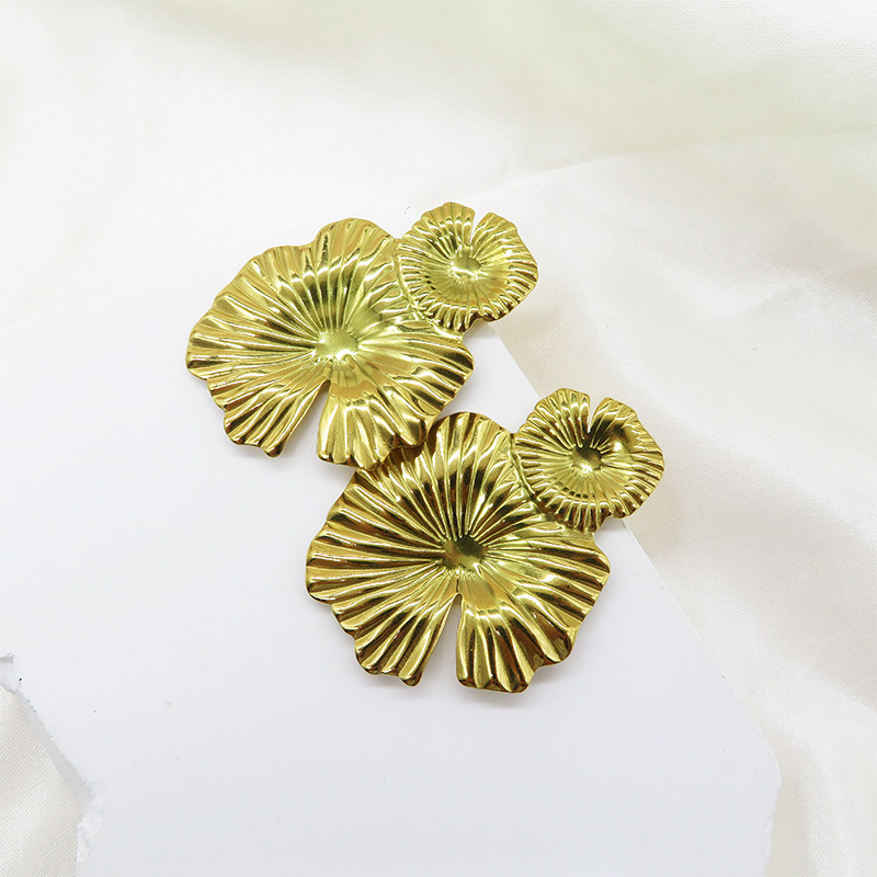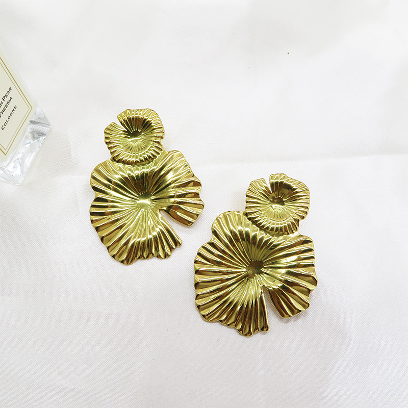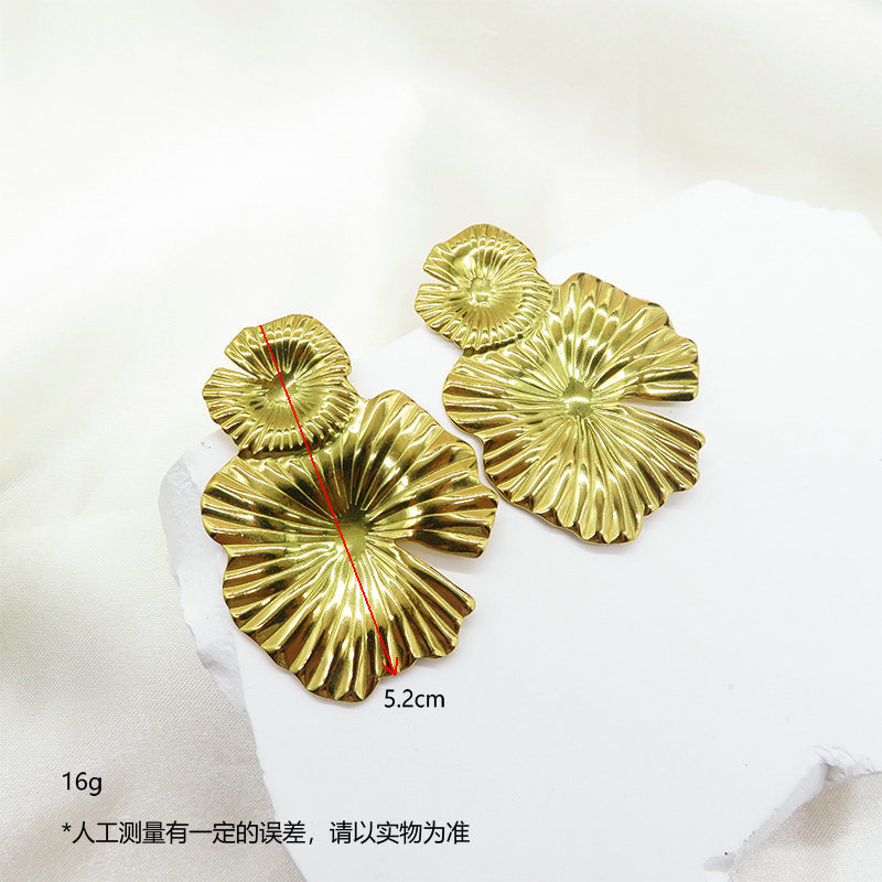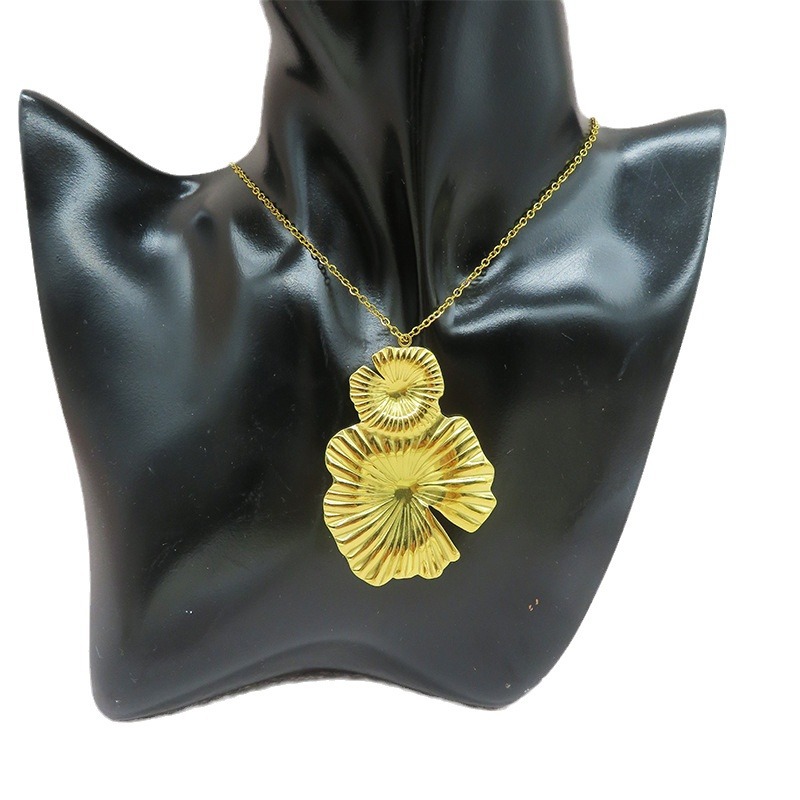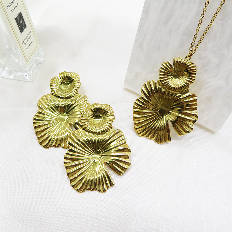 Cross Border Exaggerated Leaves Flower Earrings Women's Retro Long 18K Gold Stainless Steel Flower Pendant Necklace suit