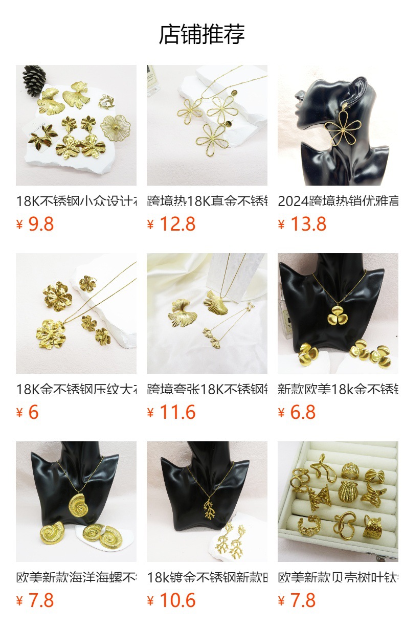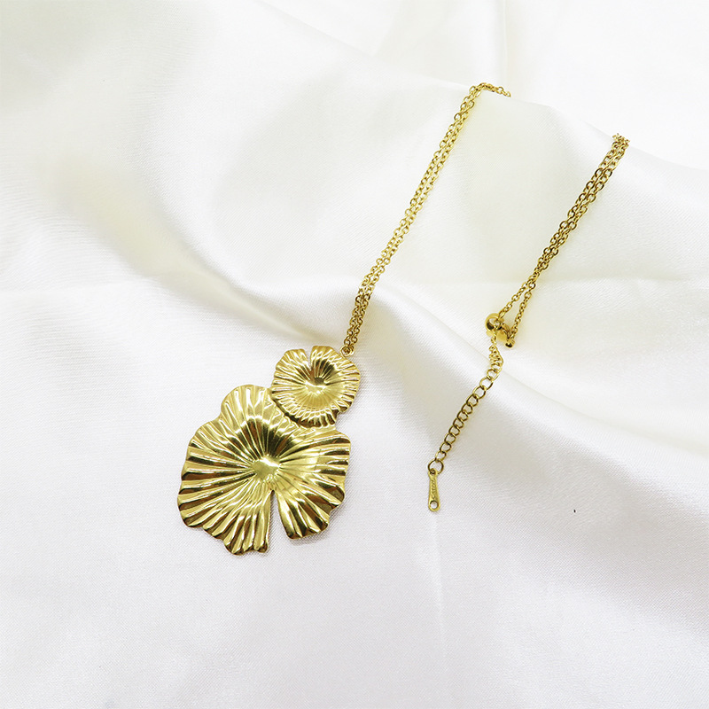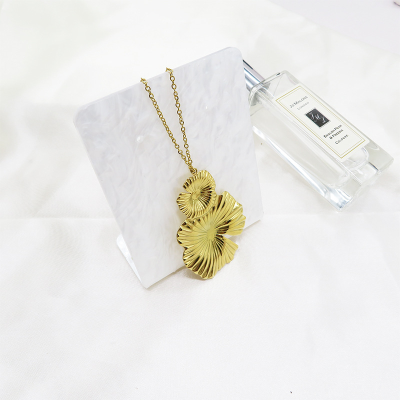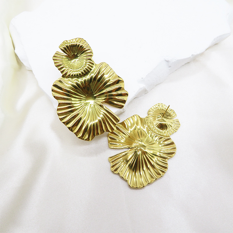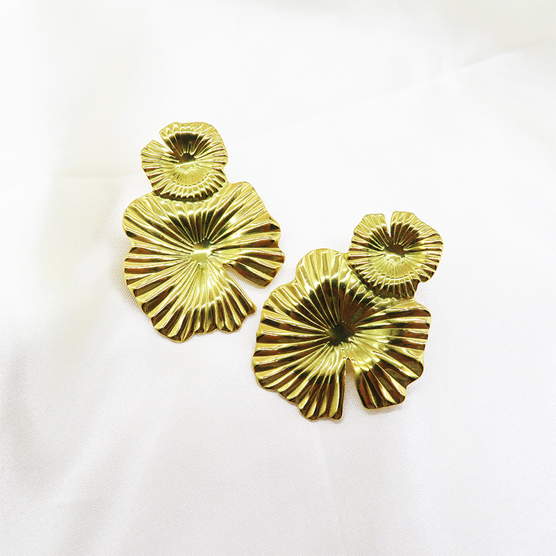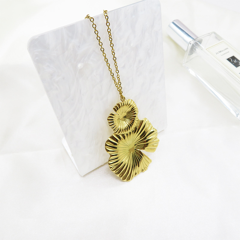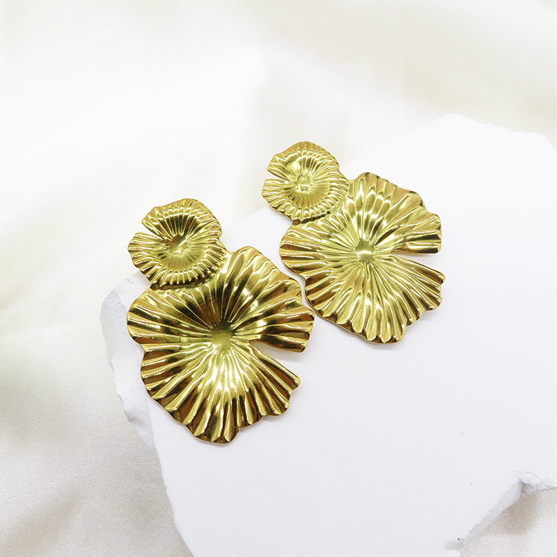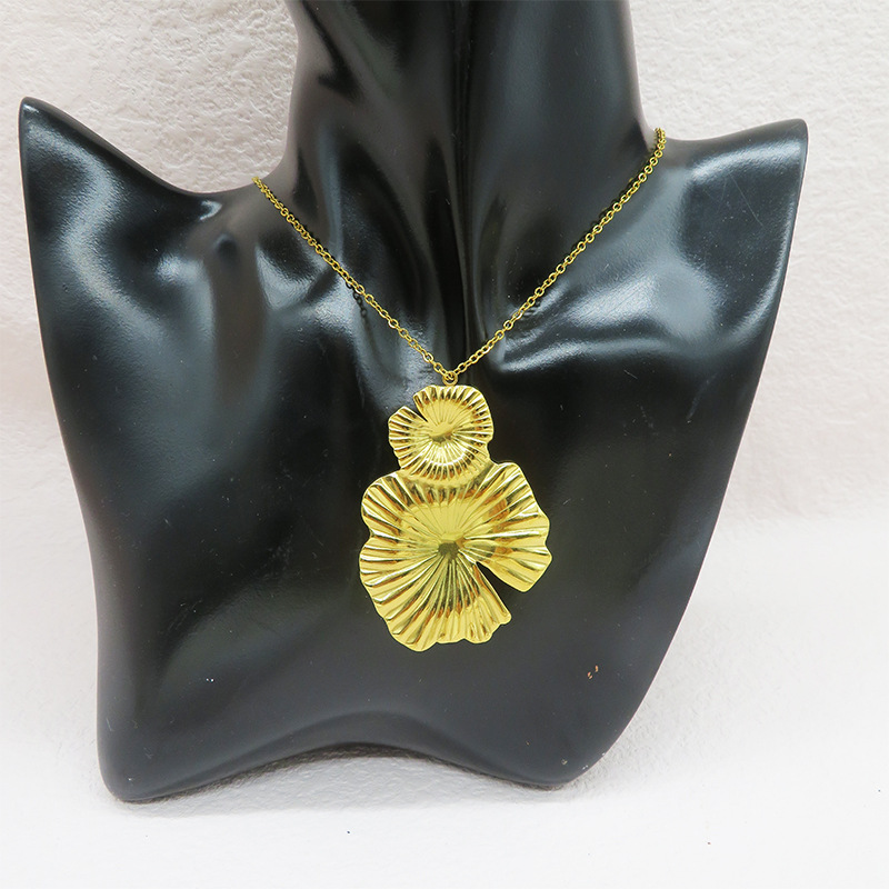 Cross Border Exaggerated Leaves Flower Earrings Women's Retro Long 18K Gold Stainless Steel Flower Pendant Necklace suit