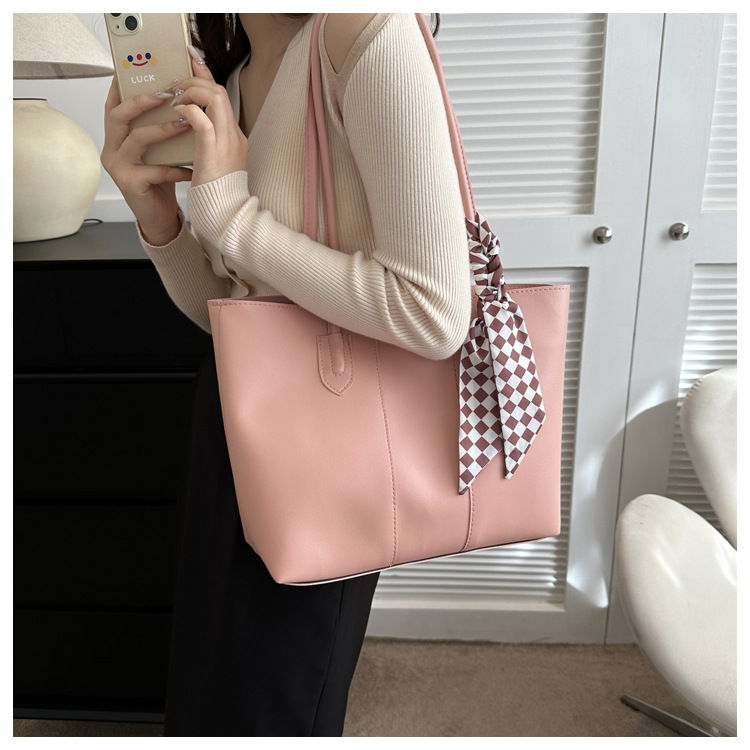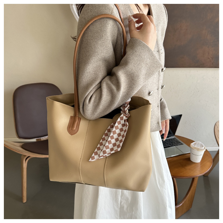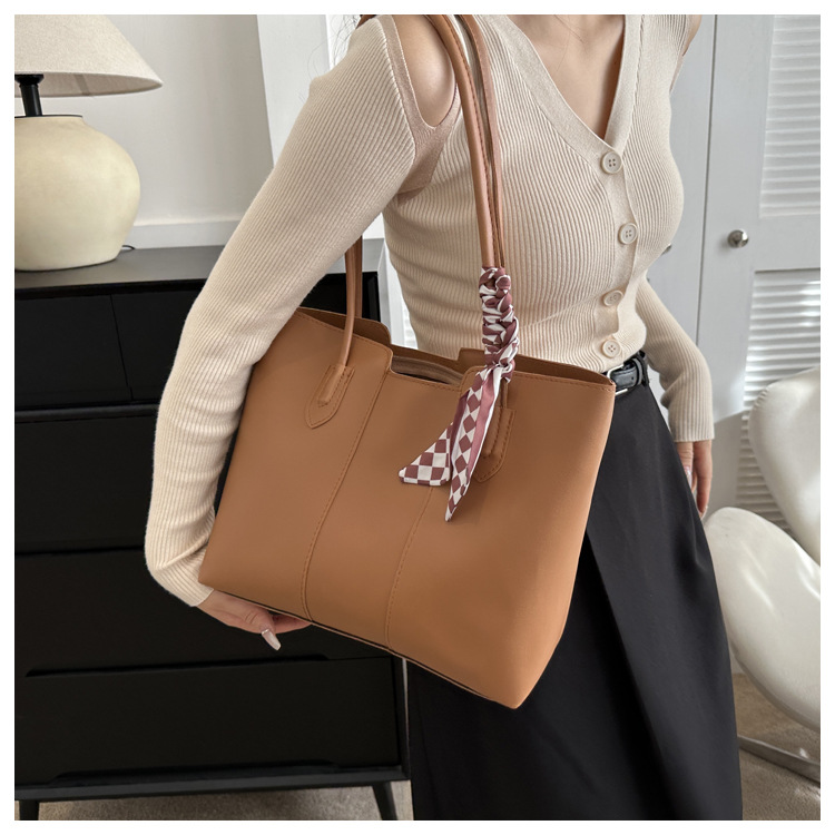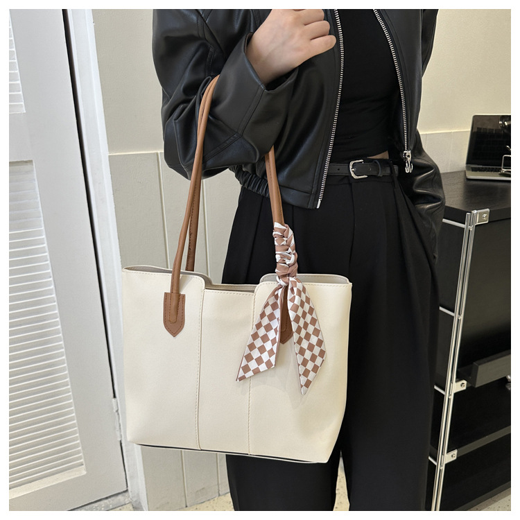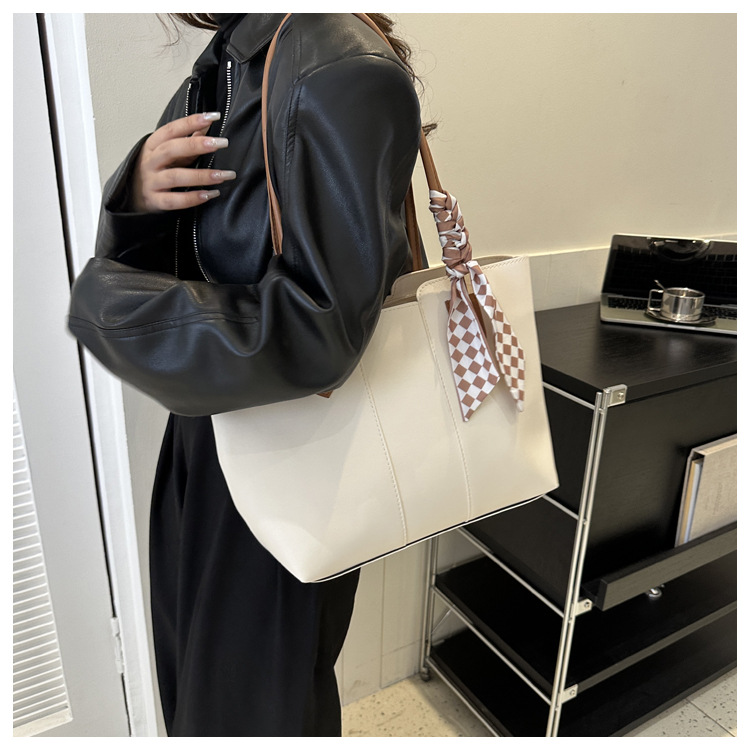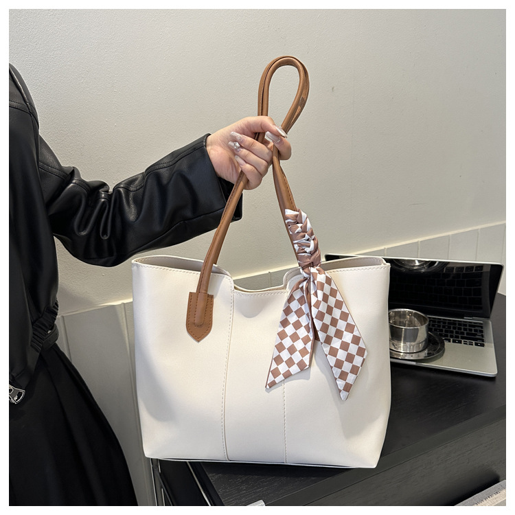 2024 Summer New Simple Daily Work Commuter Large Capacity Bag Women's Fashion Silk Scarf Decorative Tote Bag
