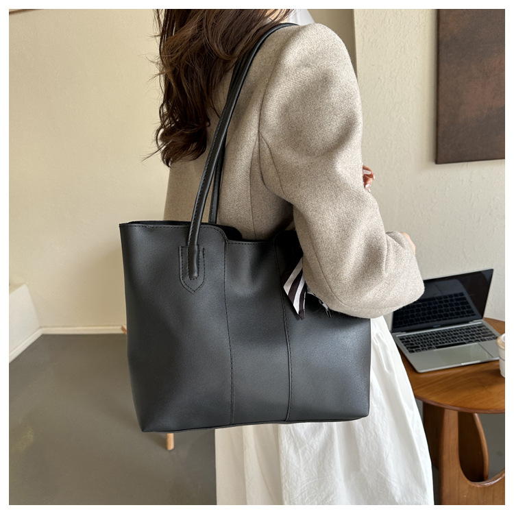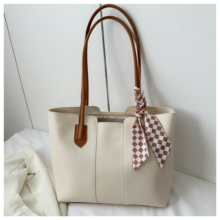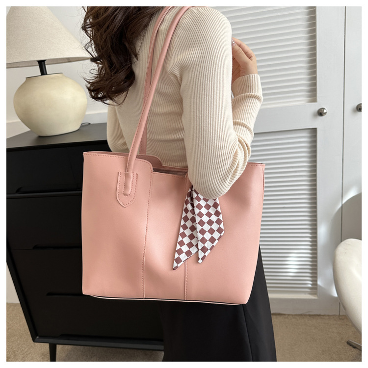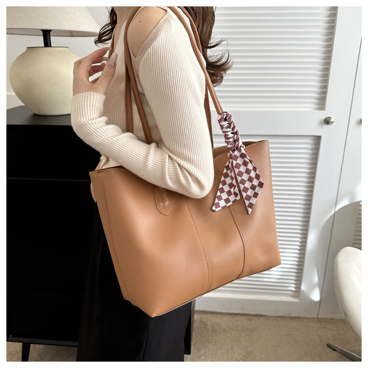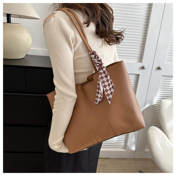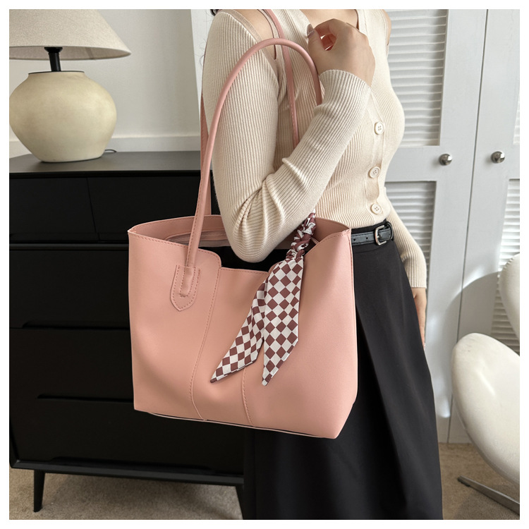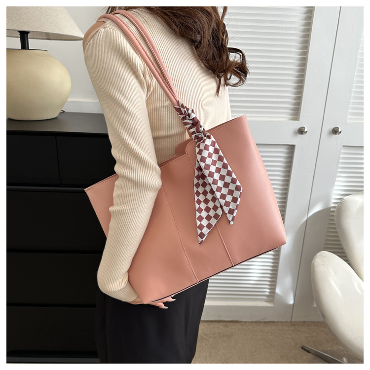 2024 Summer New Simple Daily Work Commuter Large Capacity Bag Women's Fashion Silk Scarf Decorative Tote Bag