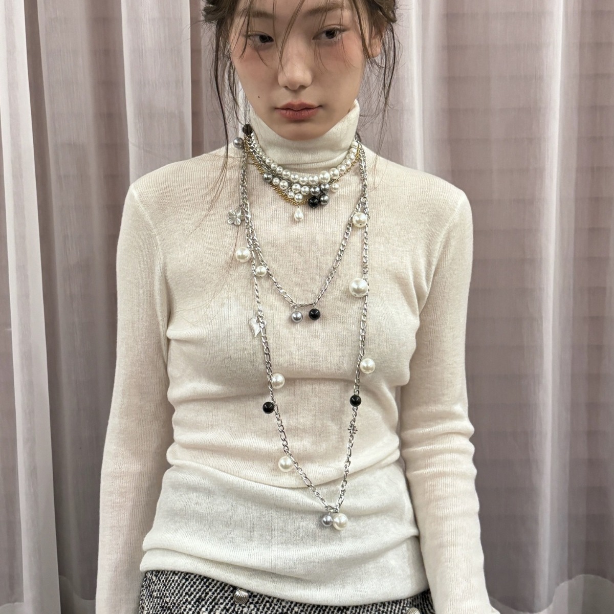 2024 new black currant leaf shell pearl necklace suit stacked multi-layer black and white Joker high fashion rich