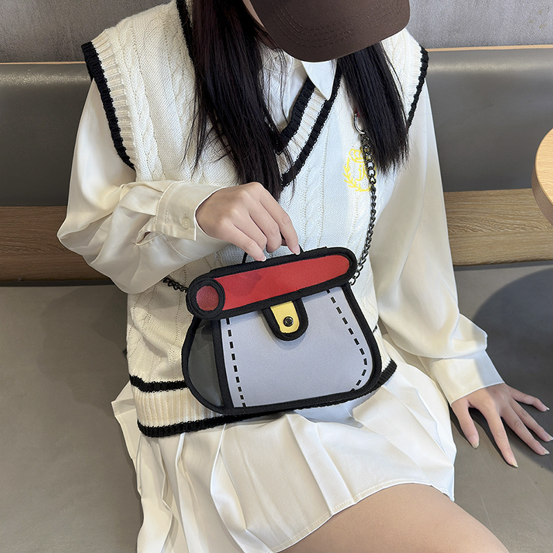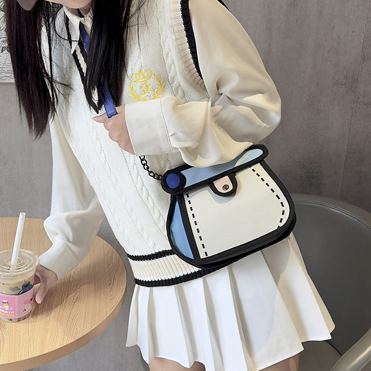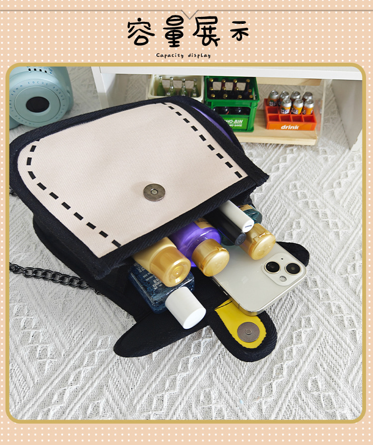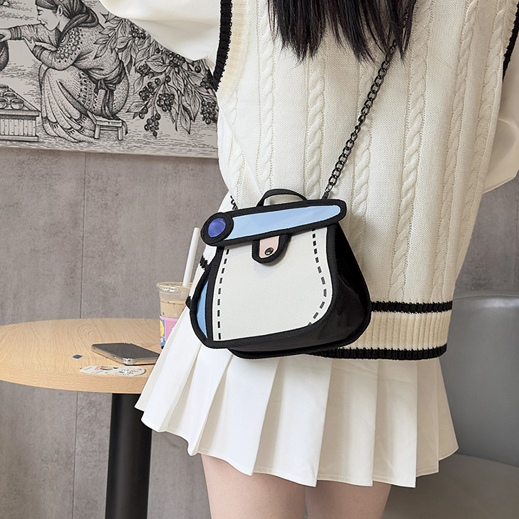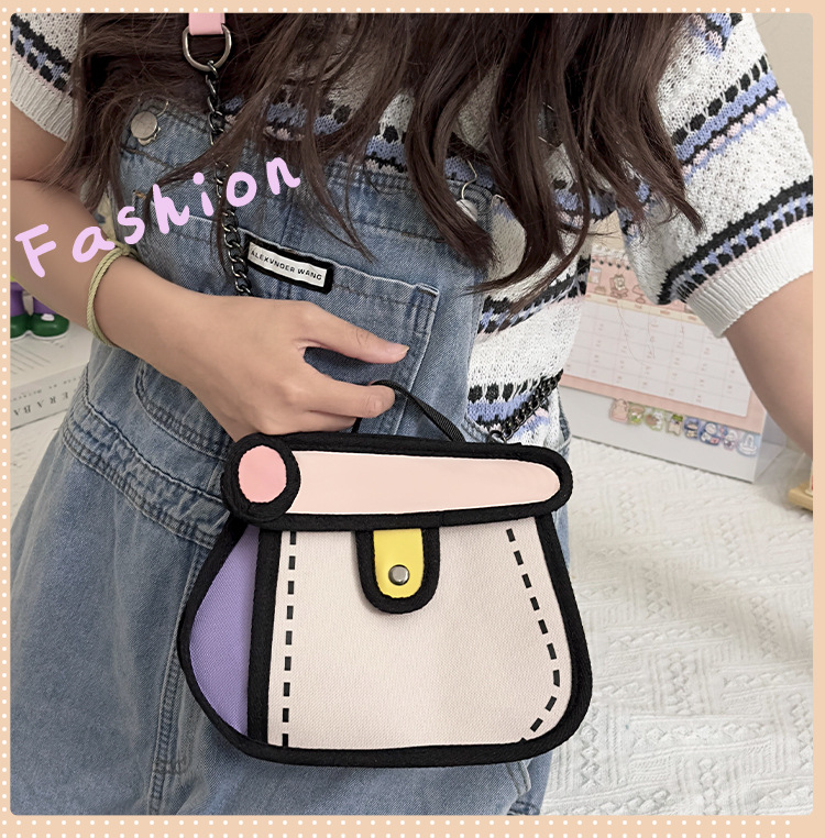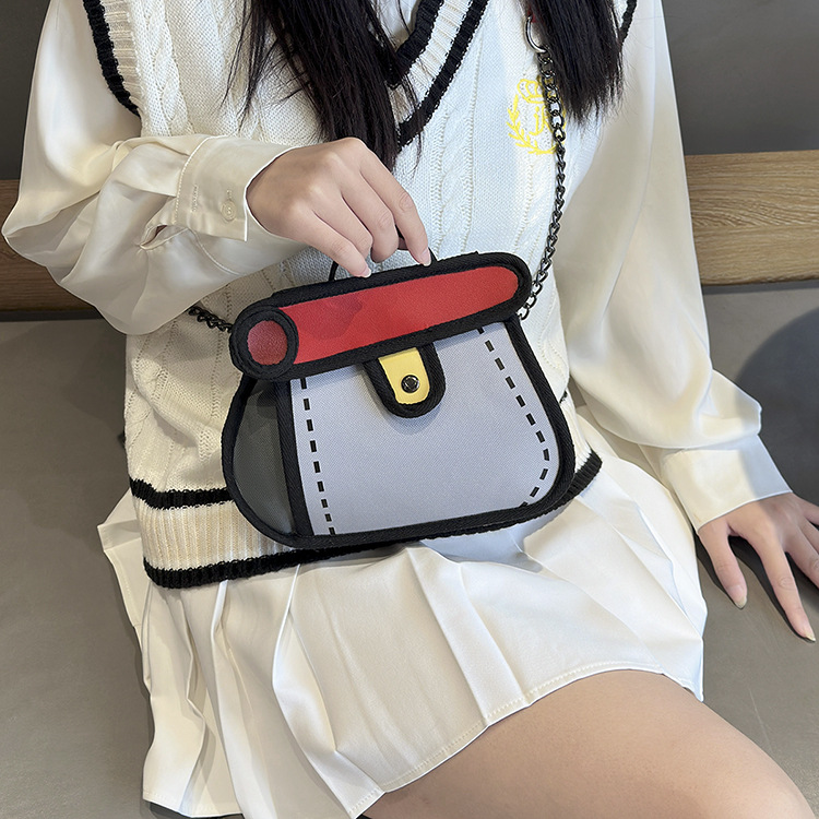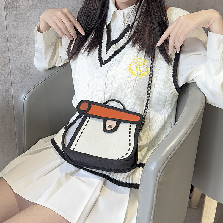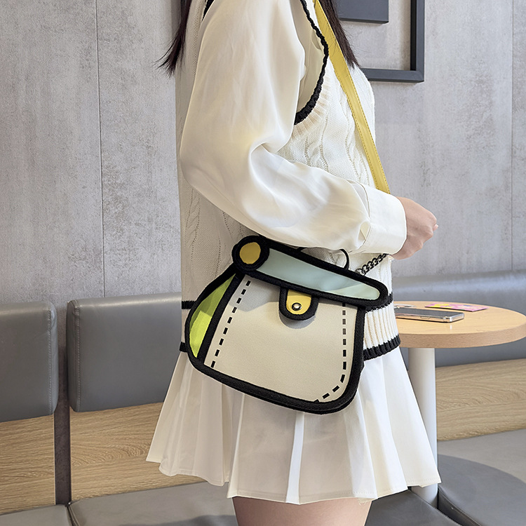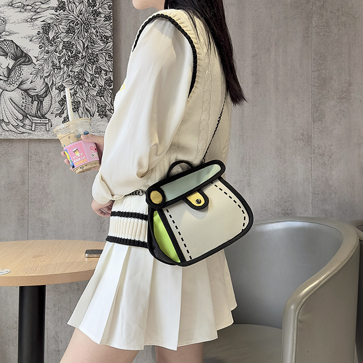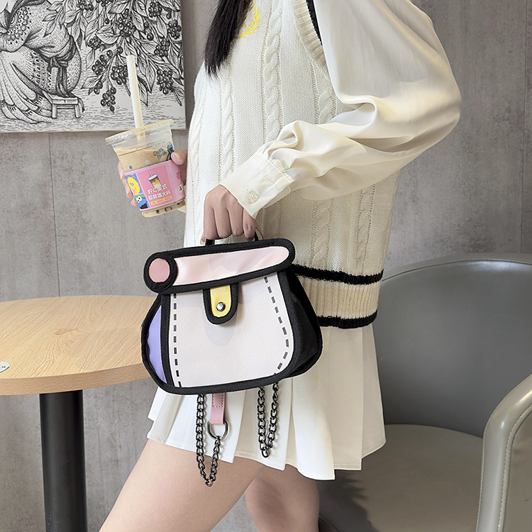 Niche Design Cartoon Bag for Women 2025 New Canvas Handbag Cute Two-Dimensional Chain Bag Crossbody Bag