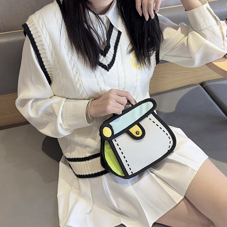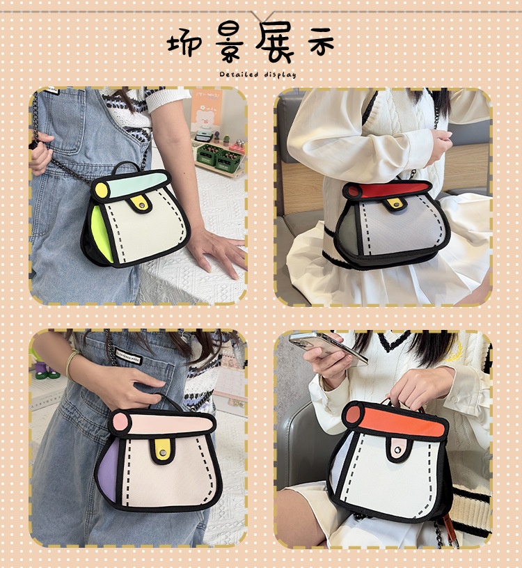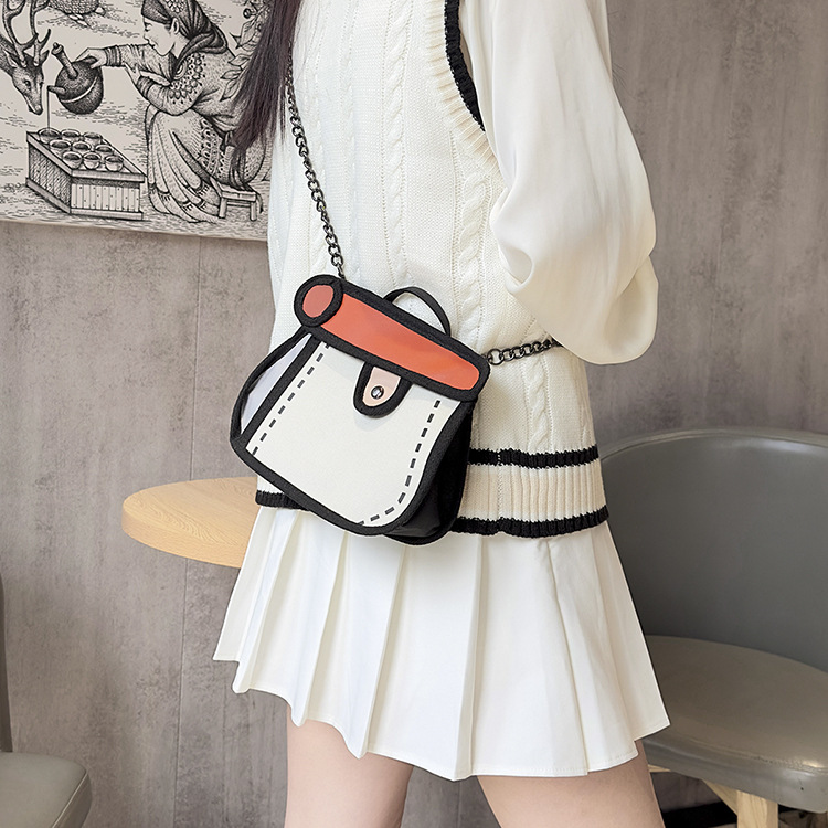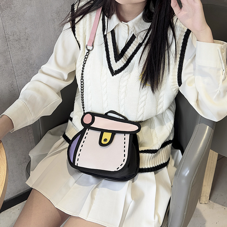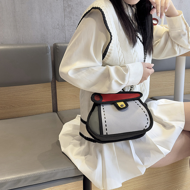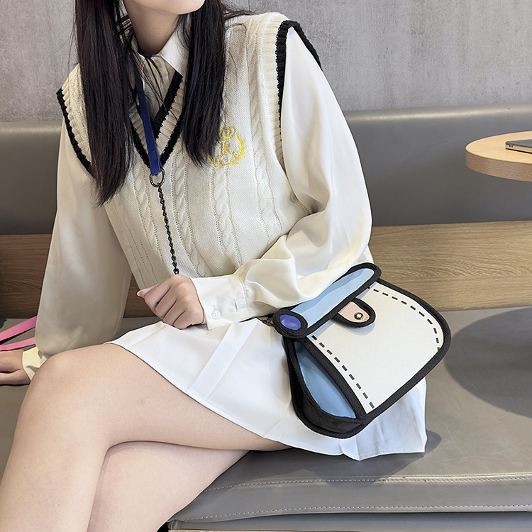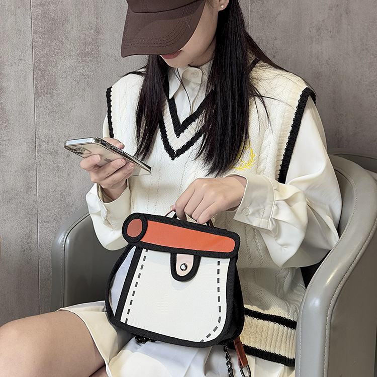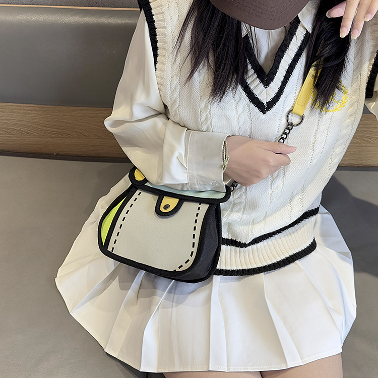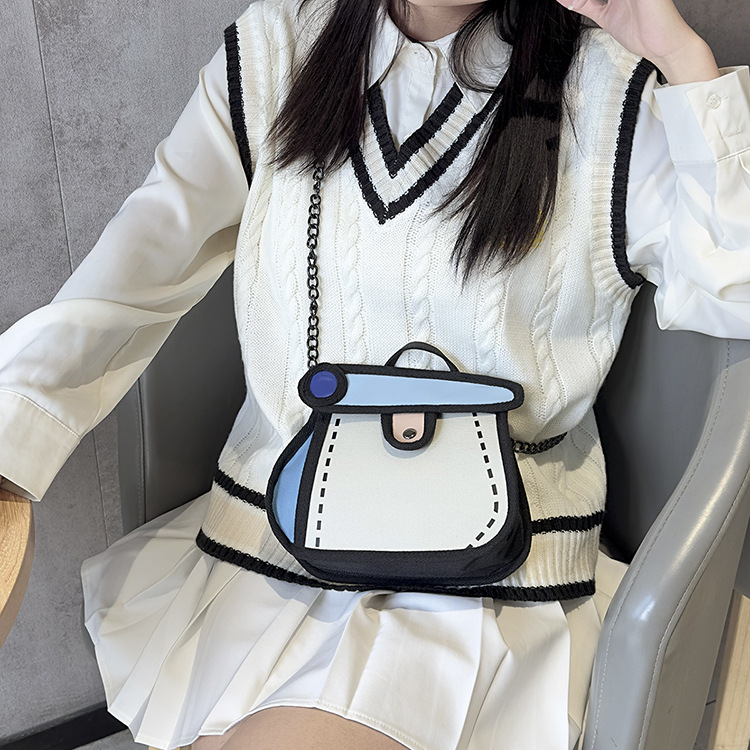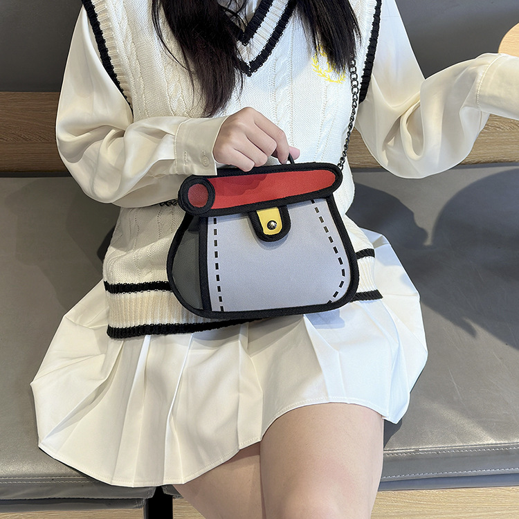Niche Design Cartoon Bag for Women 2025 New Canvas Handbag Cute Two-Dimensional Chain Bag Crossbody Bag