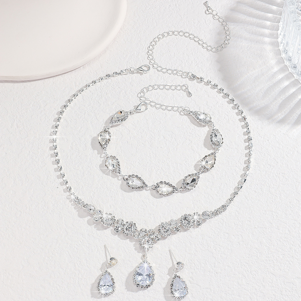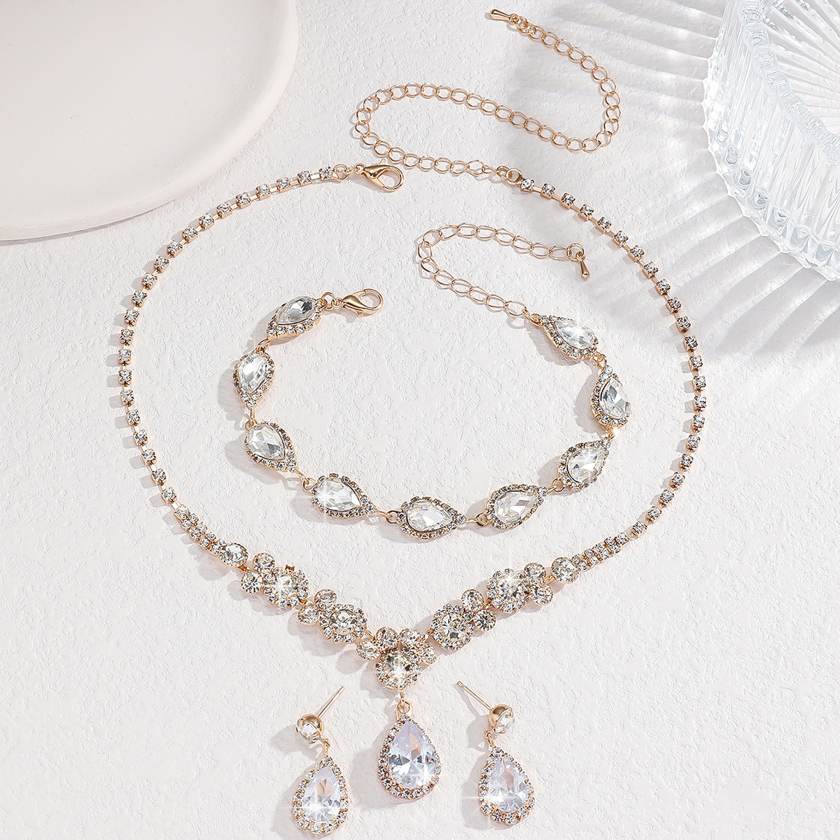 Bridal Jewelry suit High-end Three-piece Necklace Earrings Bracelet Wedding Dress Luxury Elegant All-match Accessories