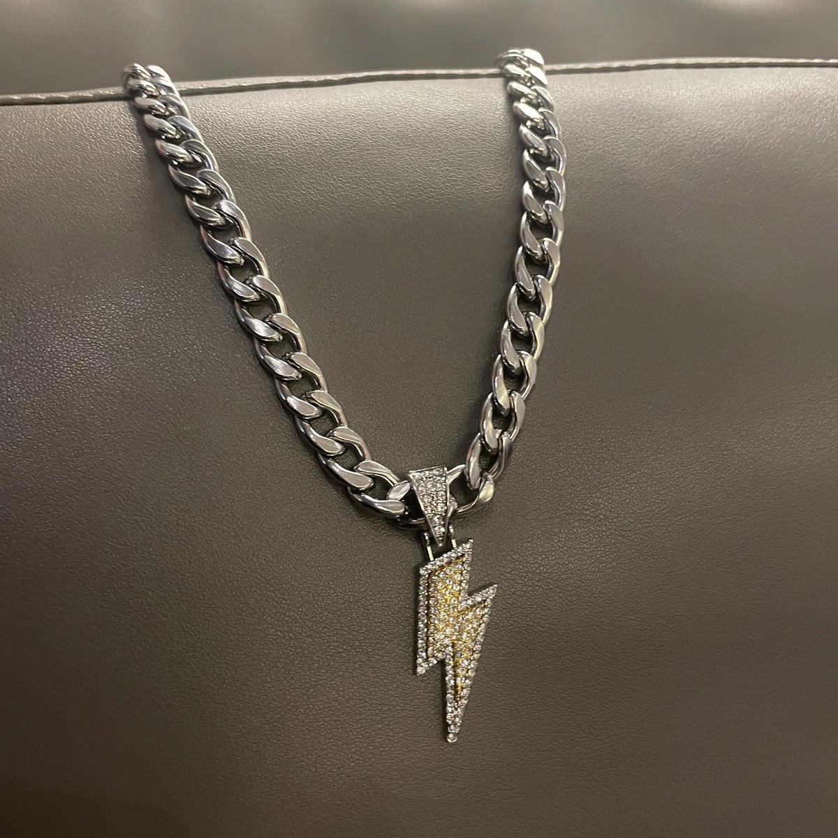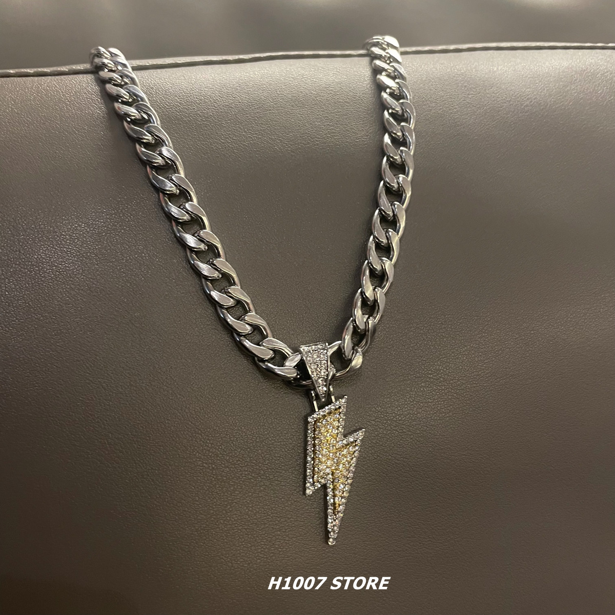Color: Full Diamond Lightning-Titanium Steel Cuban Chain