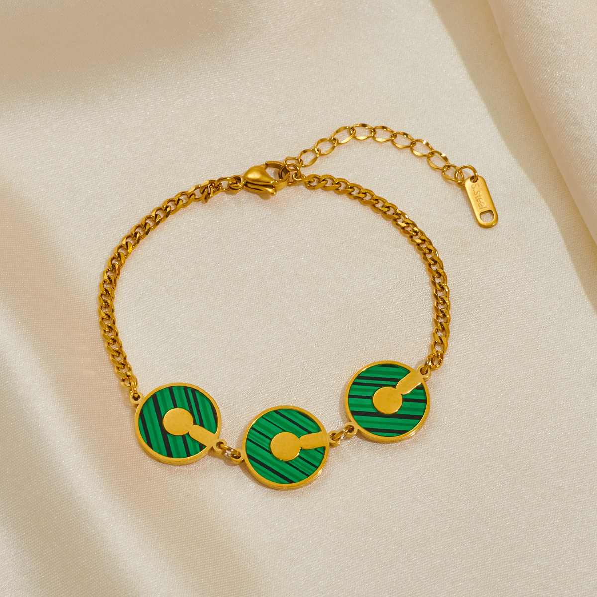 Color: Peacock green disc bracelet