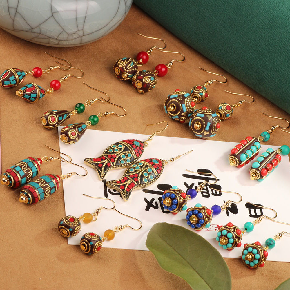 New Original Retro Nepal Earrings Middle Ancient vintage Simple Earrings Niche Design Jewelry Wholesale