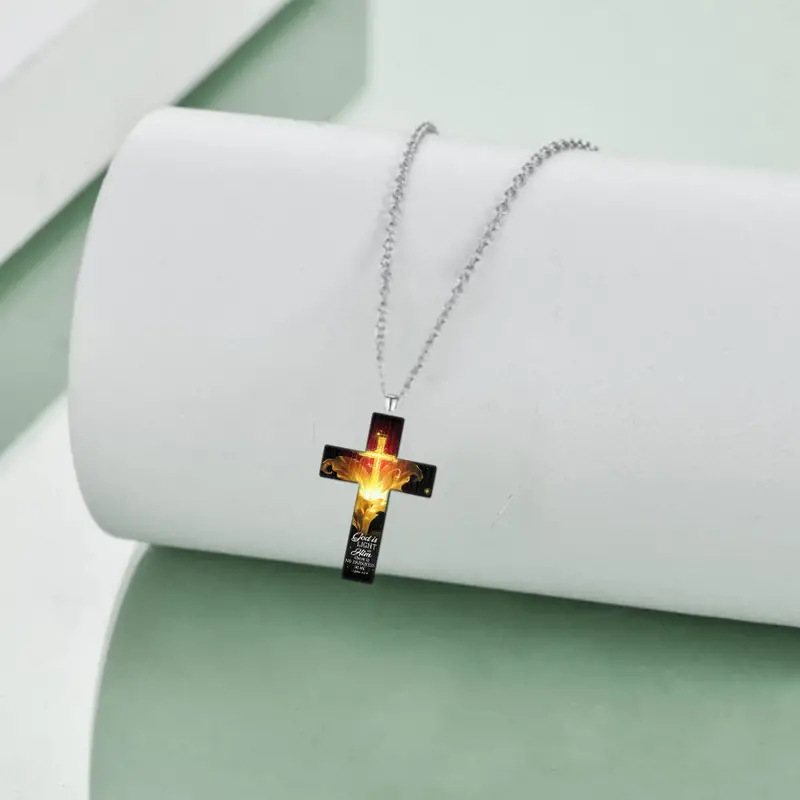 Cross-border temu Explosive Hip-hop Men's Cross Sticker Pendant Necklace Painted Graphic Punk Men's Jewelry