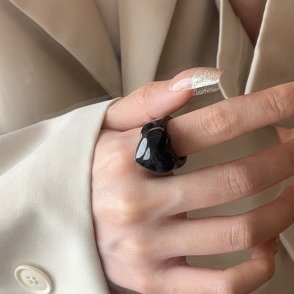 French Style Cold Style Resin Love Ring Ins Sweet Cool Mix and Match Irregular Alloy Ring Distinctive Finger Ring
