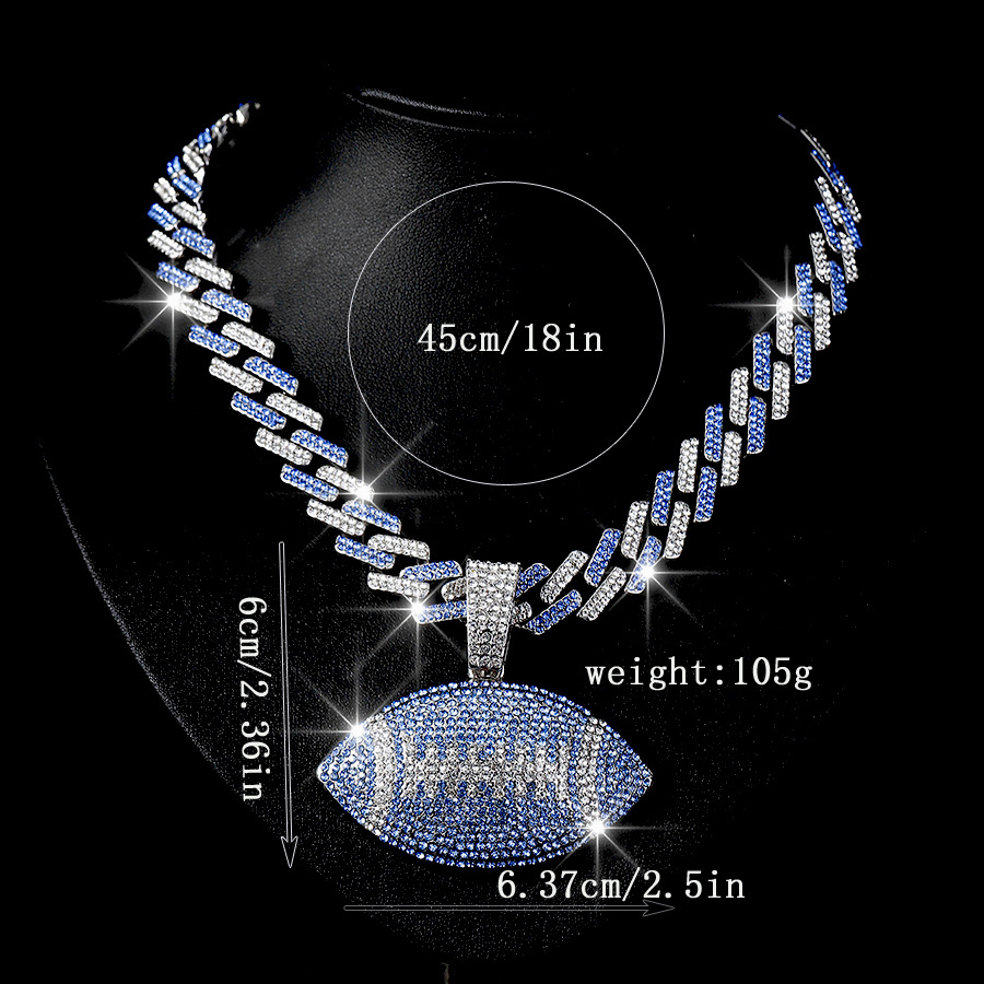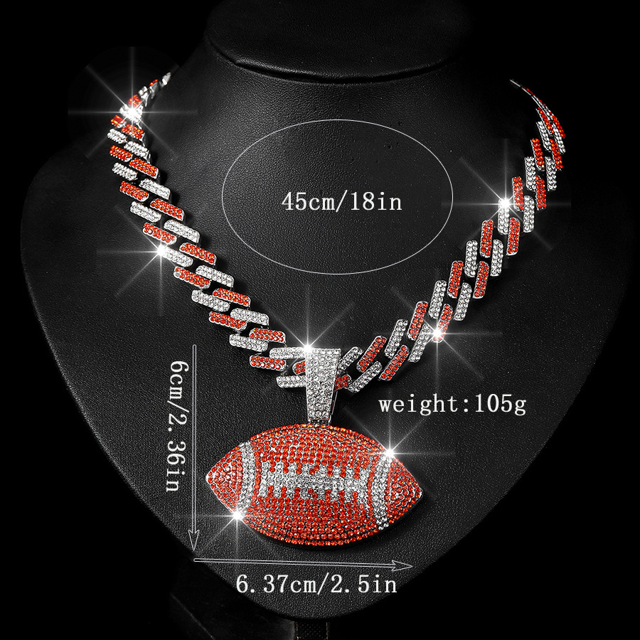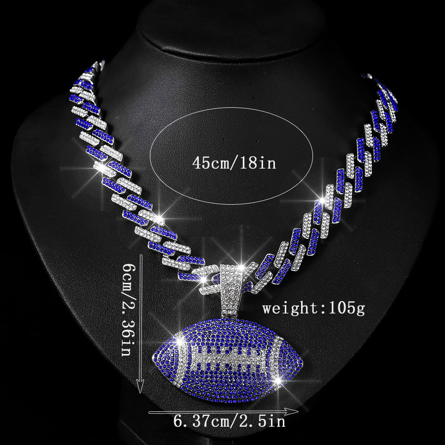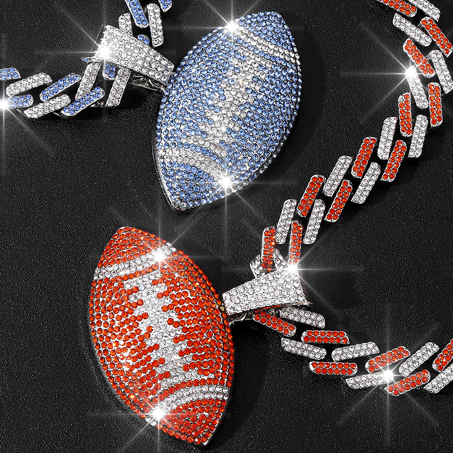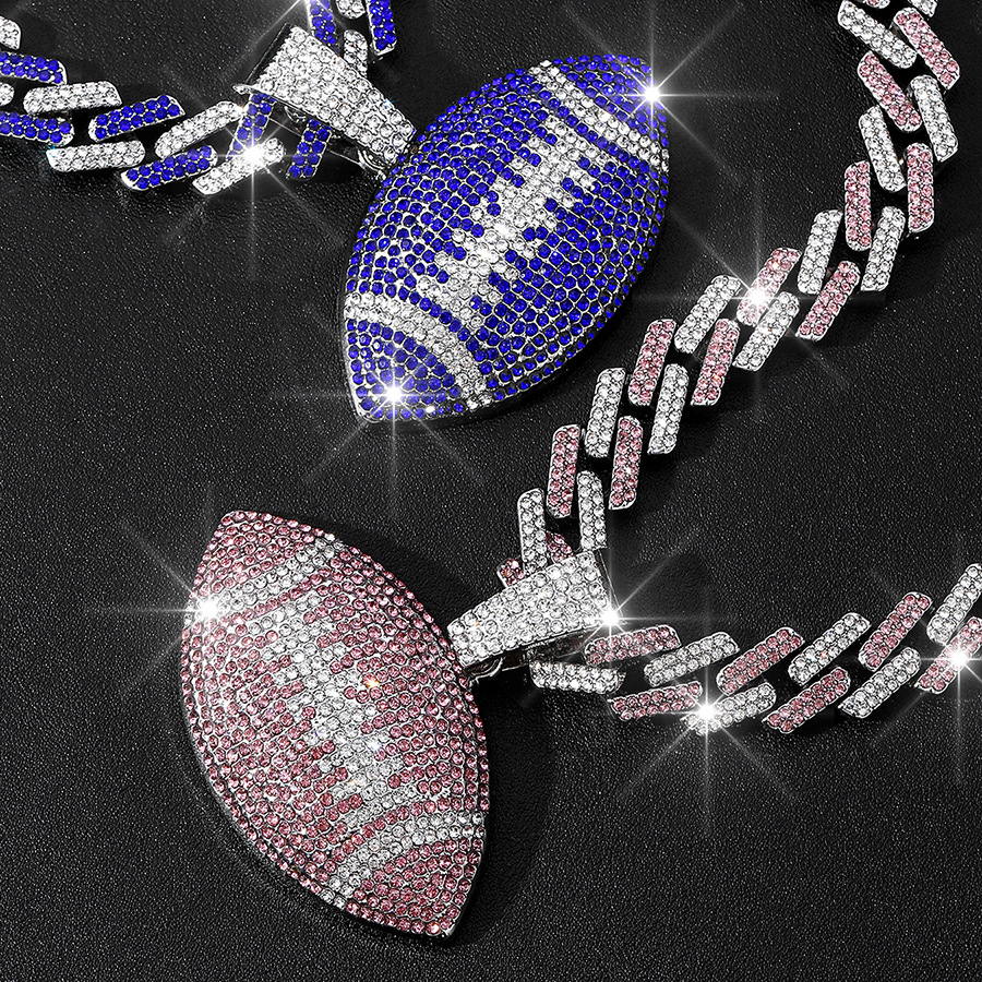 Hip-hop European and American colored diamond rugby alloy pendant cross-border fashion design sense color Cuban chain necklace for men and women