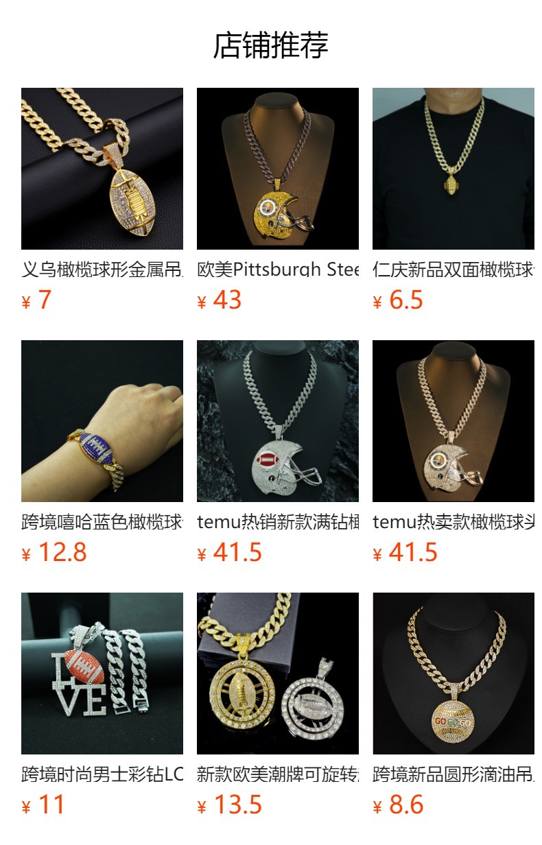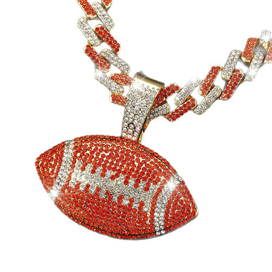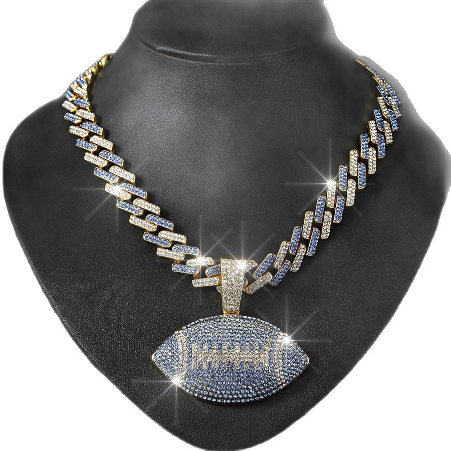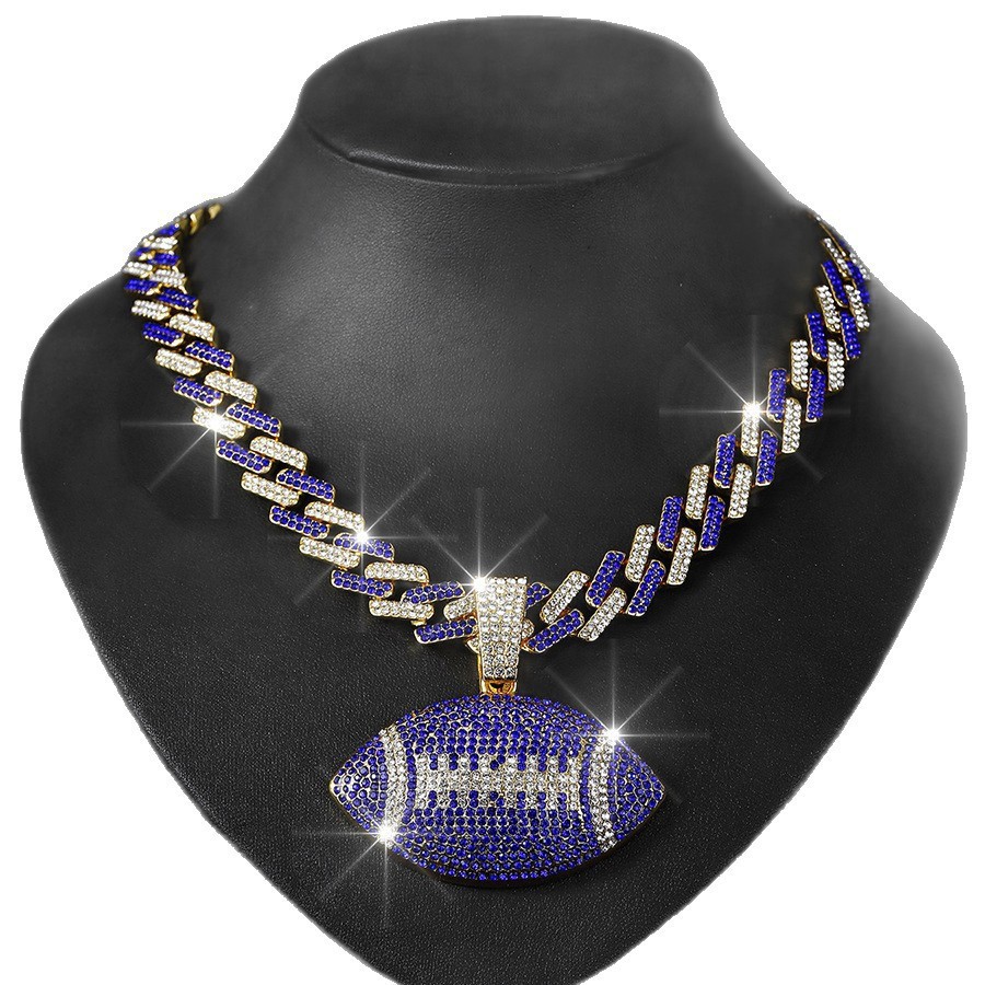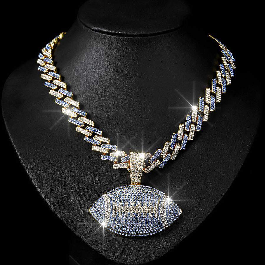 Hip-hop European and American colored diamond rugby alloy pendant cross-border fashion design sense color Cuban chain necklace for men and women
