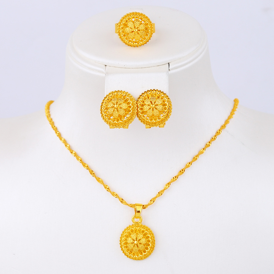 African Dubai Gold Jewelry Set Bridal Necklace Earrings Bracelet Jewelry European and American Fashion Women's Accessories