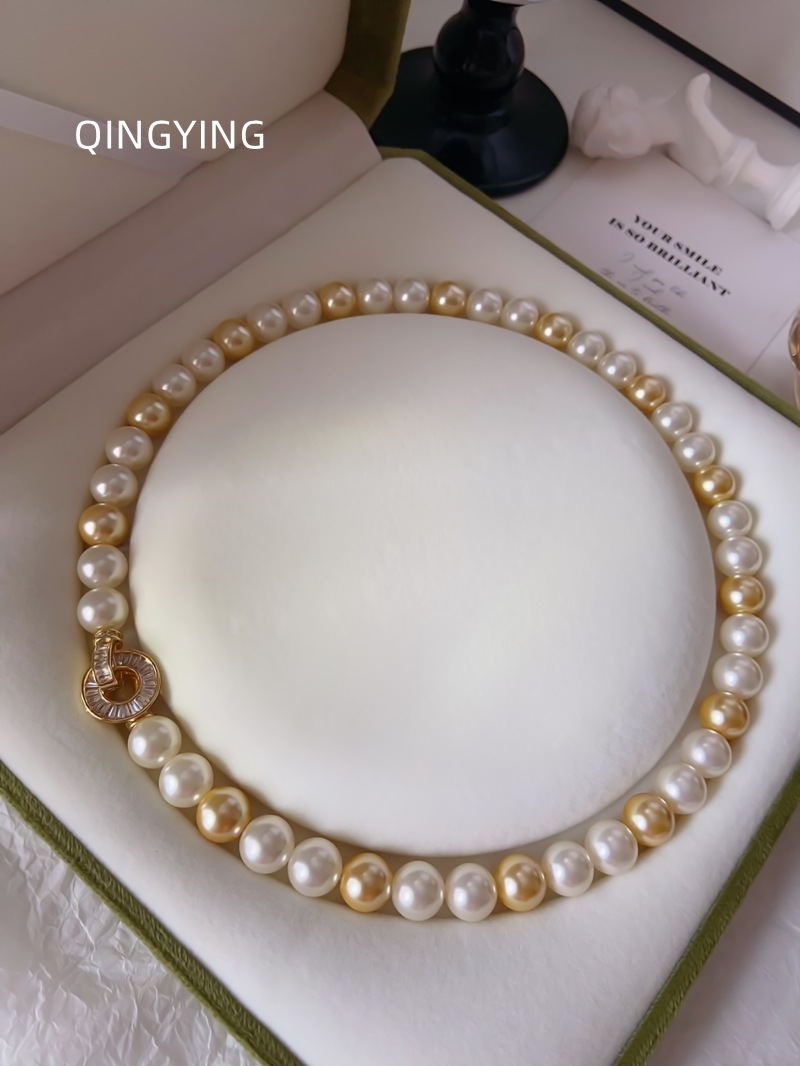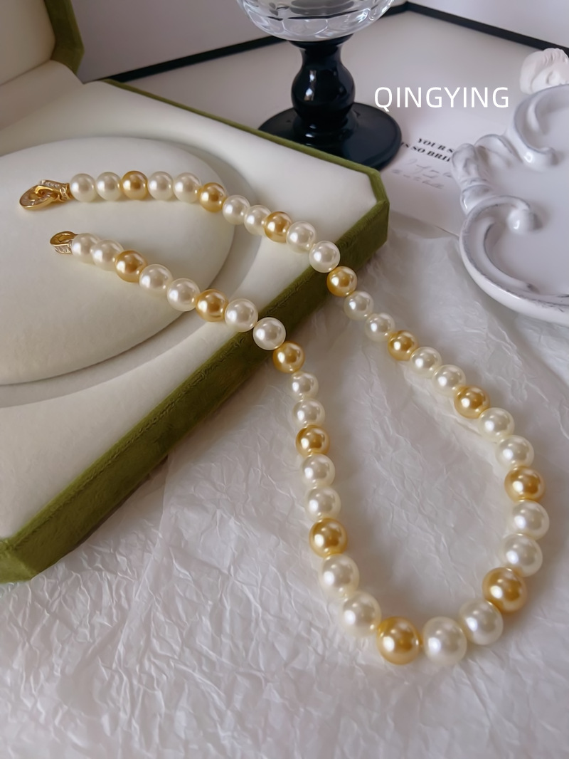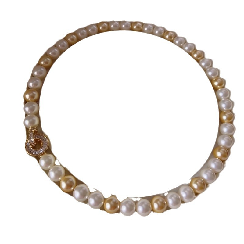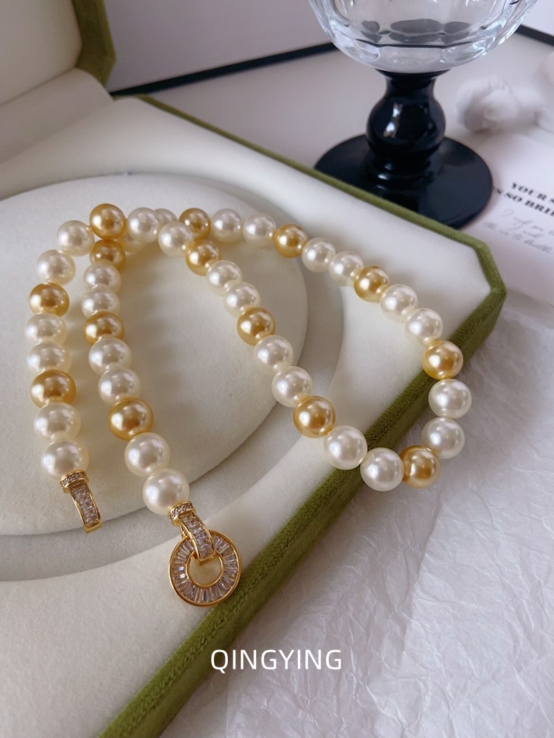 French retro mixed color round imitation pearl necklace female zircon ferris wheel disc buckle temperament high-end clavicle chain