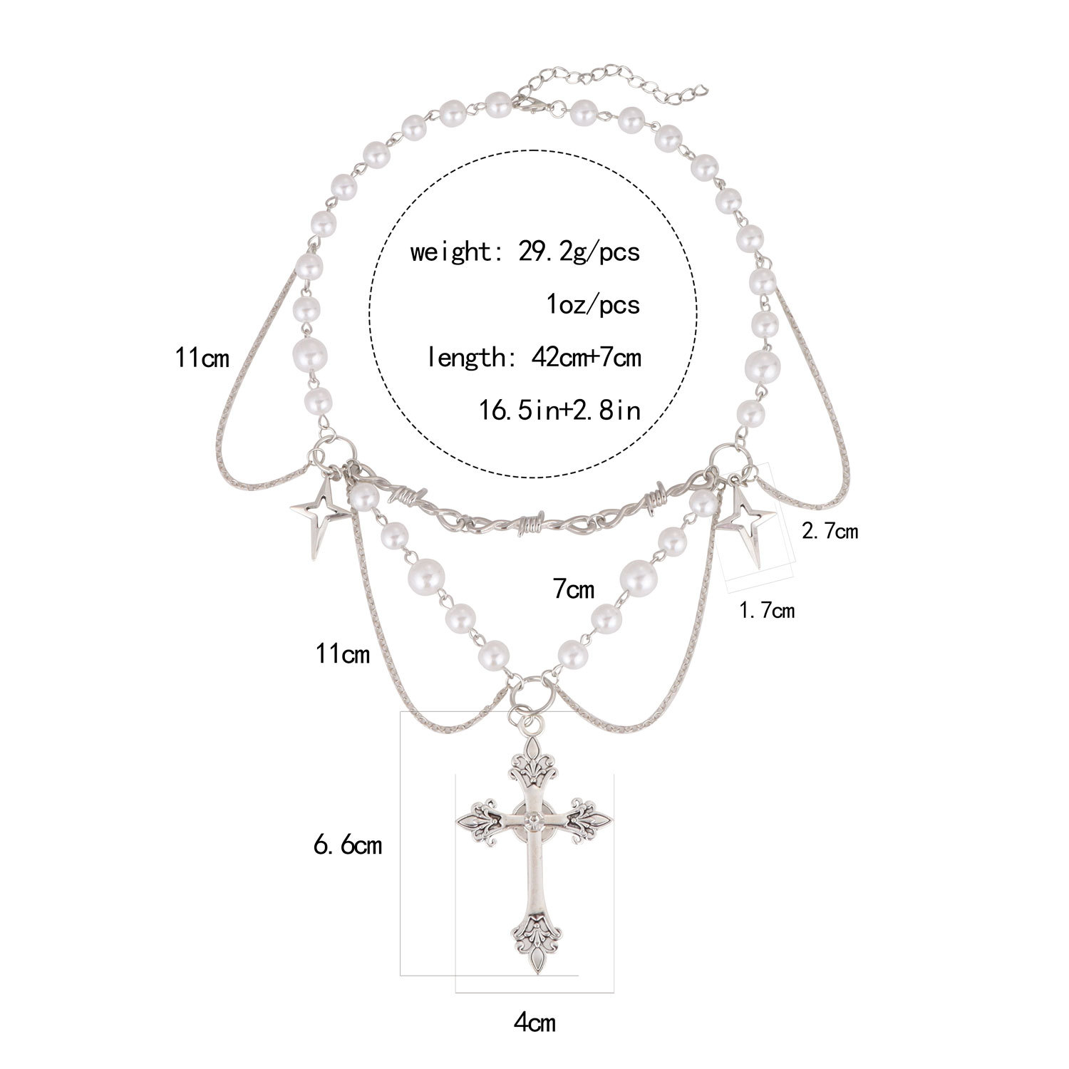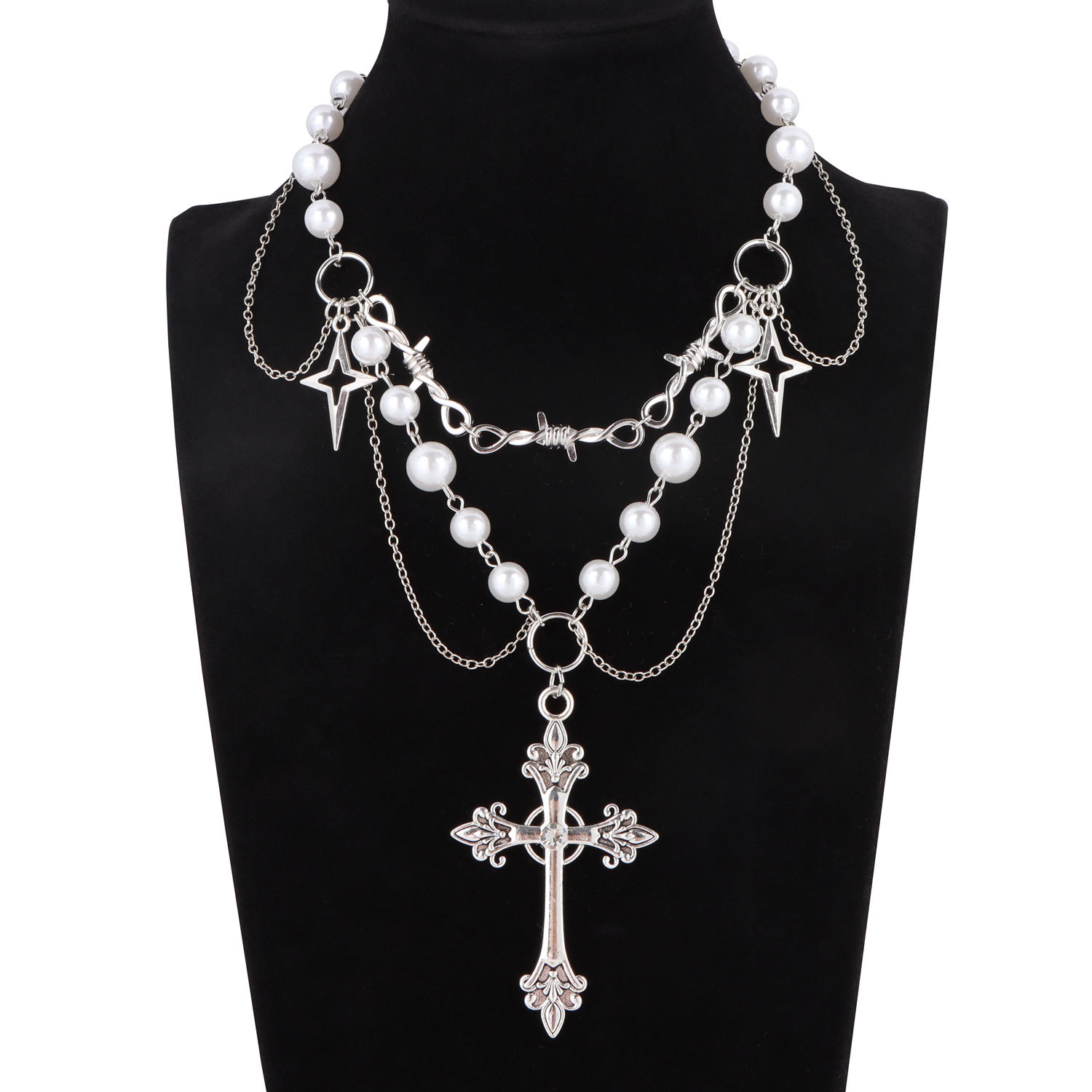 European and American cross-border jewelry niche design hot girl y2k imitation pearl tassel cross all-match fashion necklace